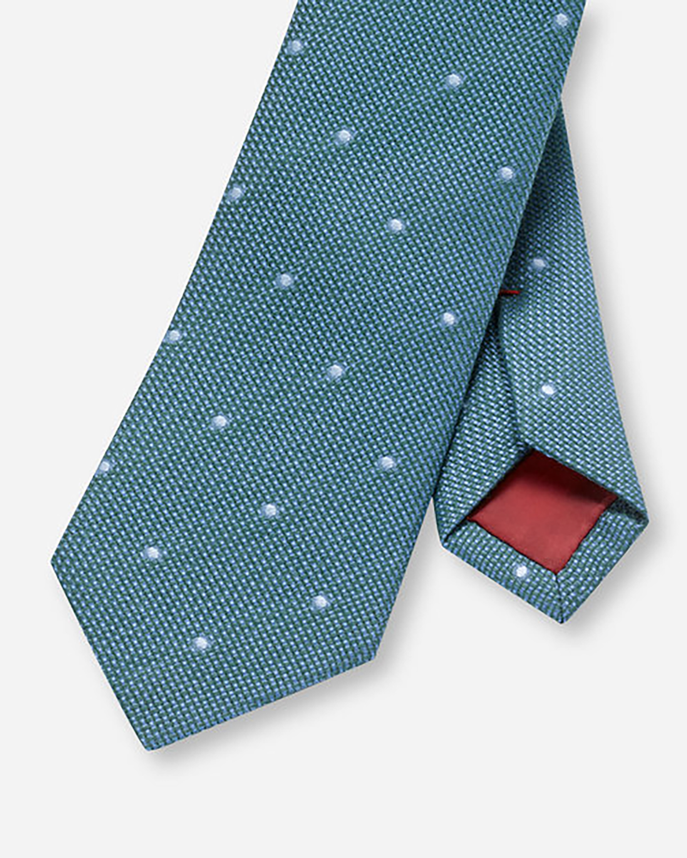 Галстук Olymp зеленого цвета в принт горох и диагональную текстуру. Галстук - надежный деловой партнер.