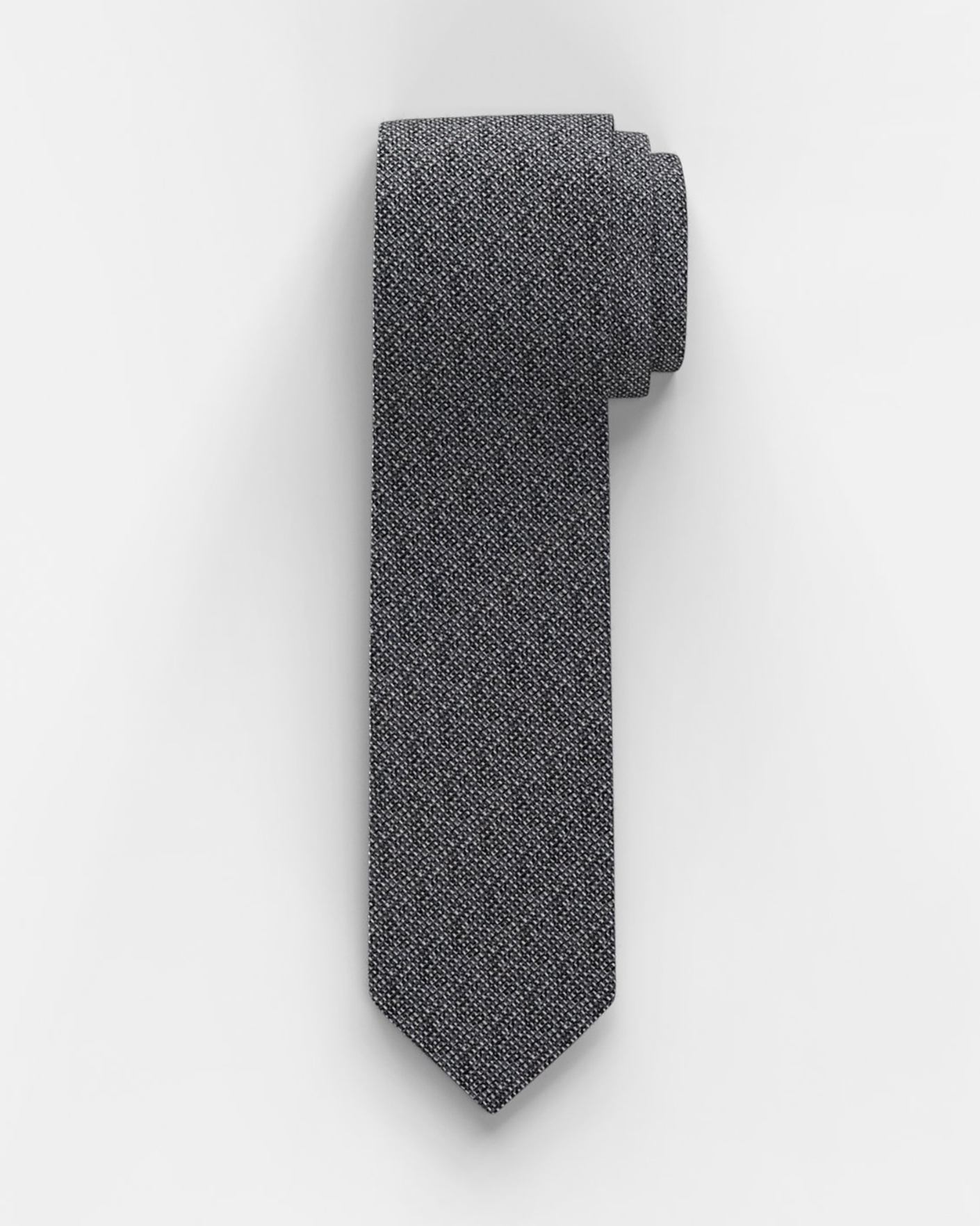 Галстук Olymp темно-серого цвета в мелкий строчный рисунок. Узкая модель 6,5 см выполнена из 100% шелка. Галстук - аксессуар для успешного бизнеса.