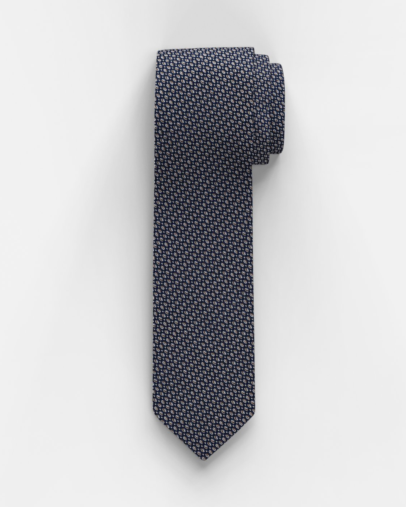 Галстук Olymp синего цвета в мелкий рисунок в виде кофейных зерен. Узкая модель 6,5 см выполнена из 100% шелка. Галстук - аксессуар для успешного бизнеса.