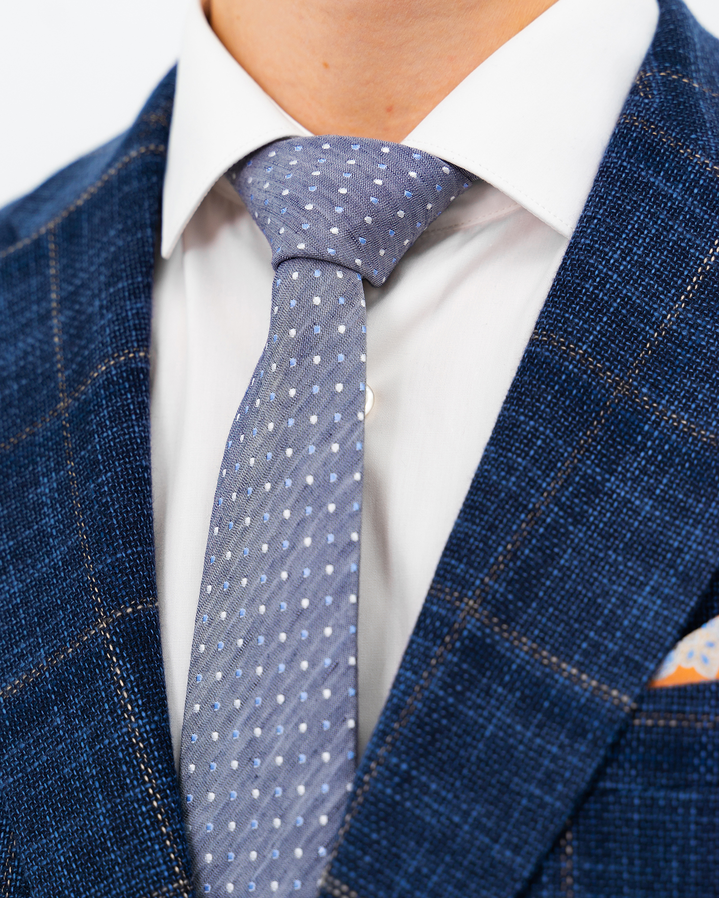 Галстук Digel сине-серого цвета в мелкий рисунок. Модель 6 см выполнена из высококачествевнного сочетания шелка, хлопка и льна. Галстук - аксессуар для успешного бизнеса.
