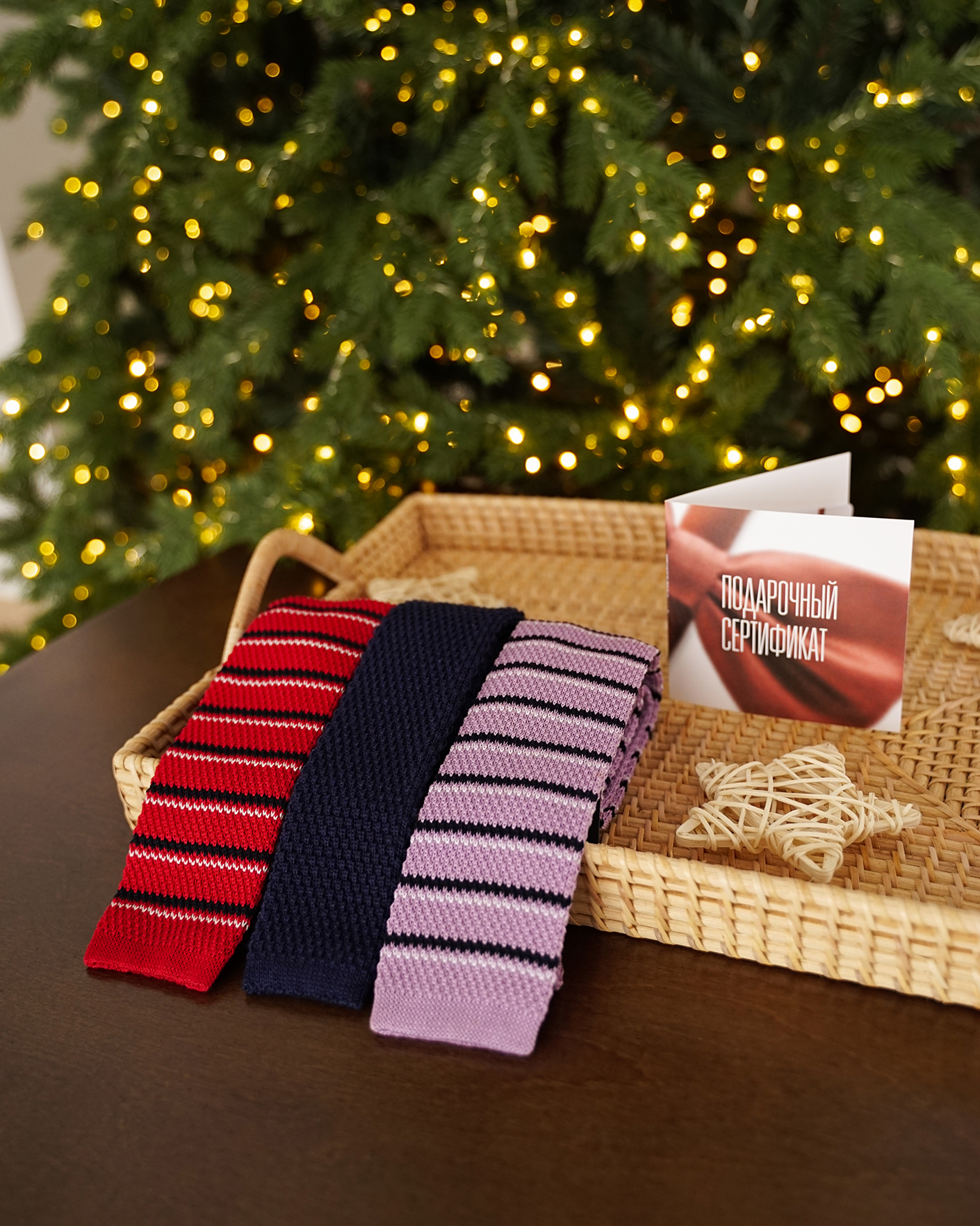 Трикотажные галстуки Bugatti в красном и сиреневом цветах в контрастную полосу. Модели выполнены из 100% хлопка в мелкую рельеыную структуру. Стильный и необычный галстук станет ярким аксессуаром.