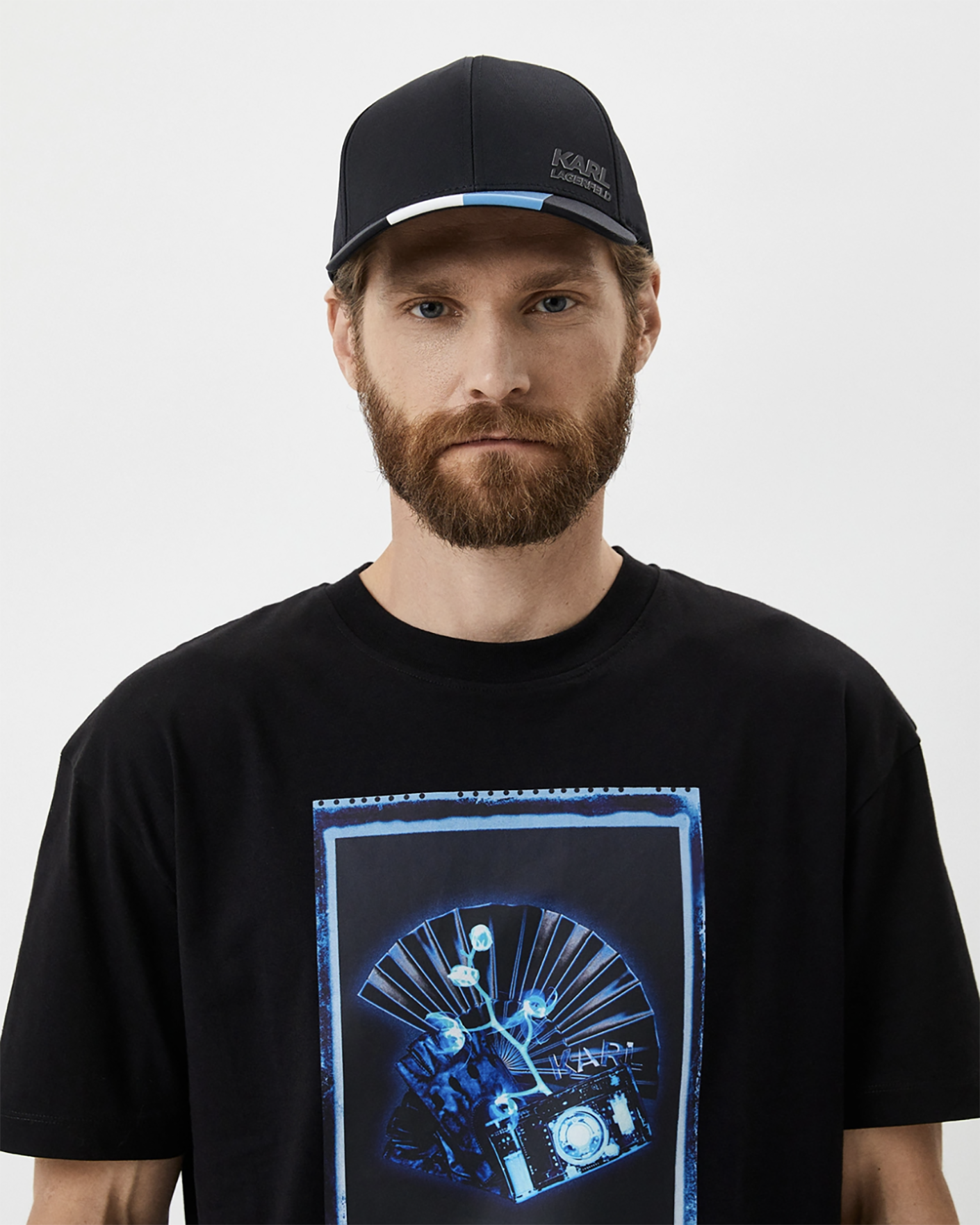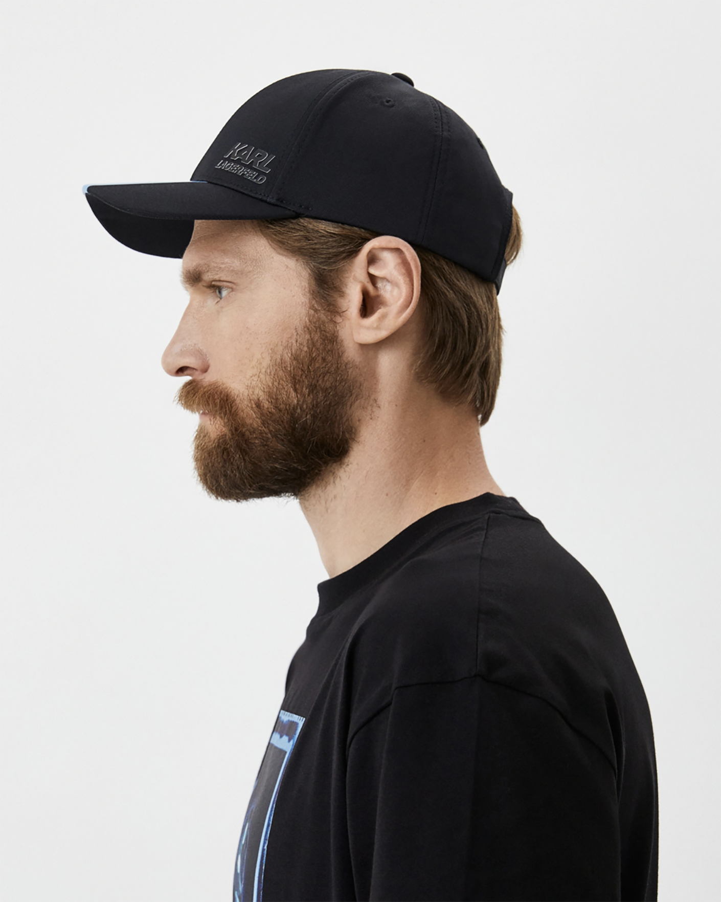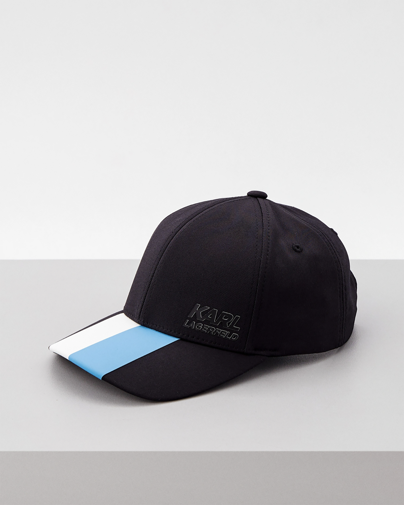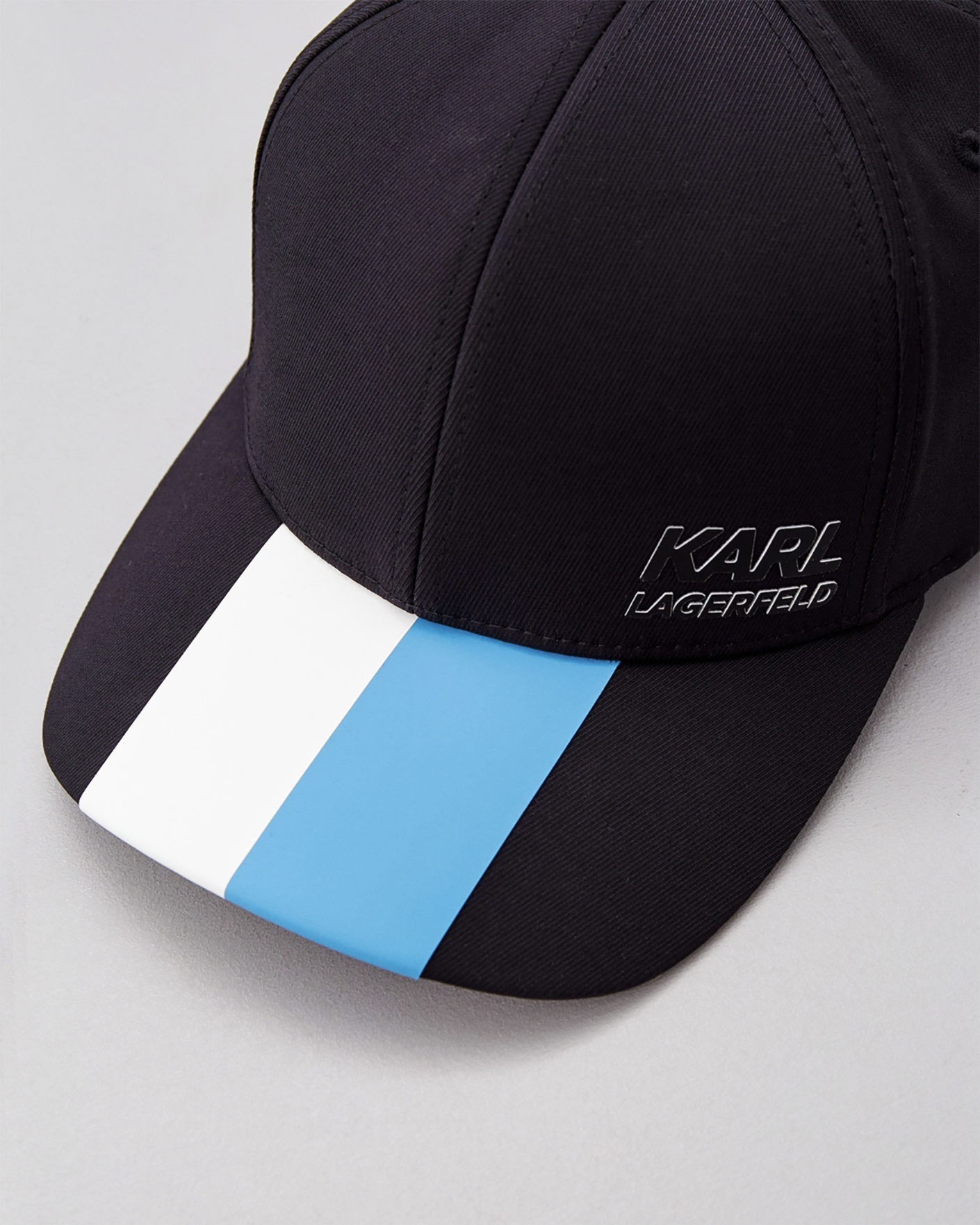 Бейсболка Karl Lagerfeld черного цвета с узнаваемым логотипом бренда и контрастными полосами на твердом козырьке. Бейсболка станет незаменимым аксессуаром для защиты от солнца.