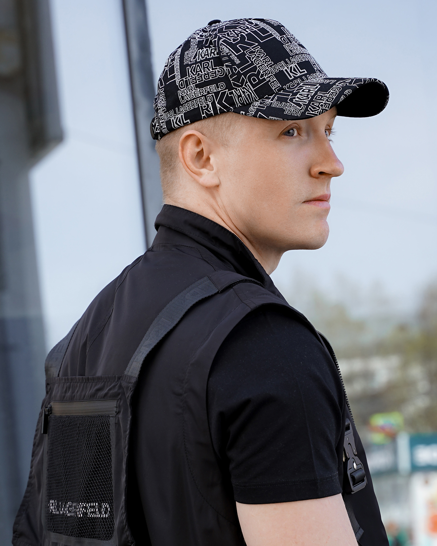 Бейсболка Karl Lagerfeld черноого цвета с узнаваемым логотипом бренда по всемц изделию. Бейсболка станет незаменимым аксессуаром для защиты от солнца.
