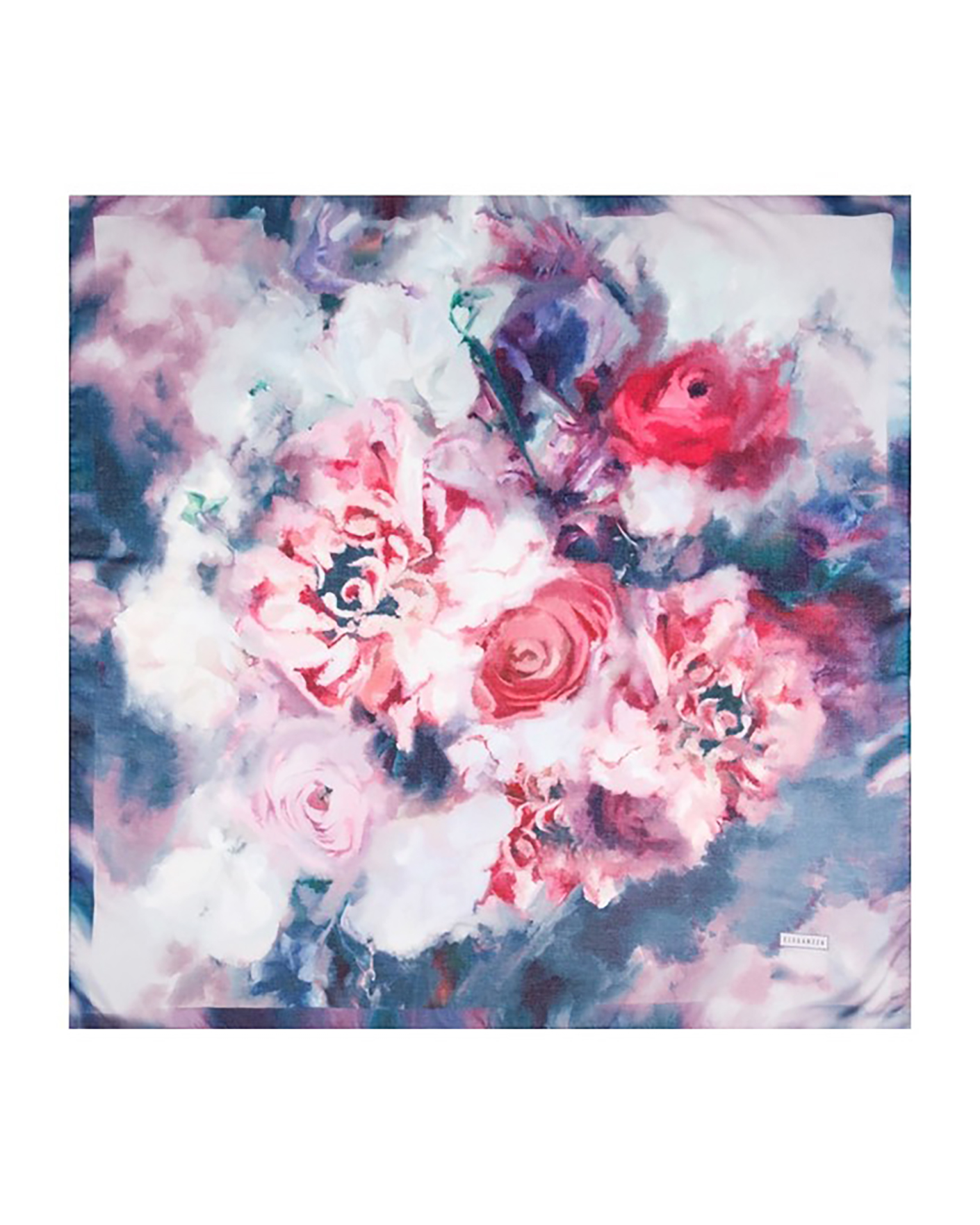 Платок Eleganzza сине-розового цвета в цветочно-акварельный рисунок. Модель квадратной формы 120*120. Платок - стильный аксесуар для дополнения образа.