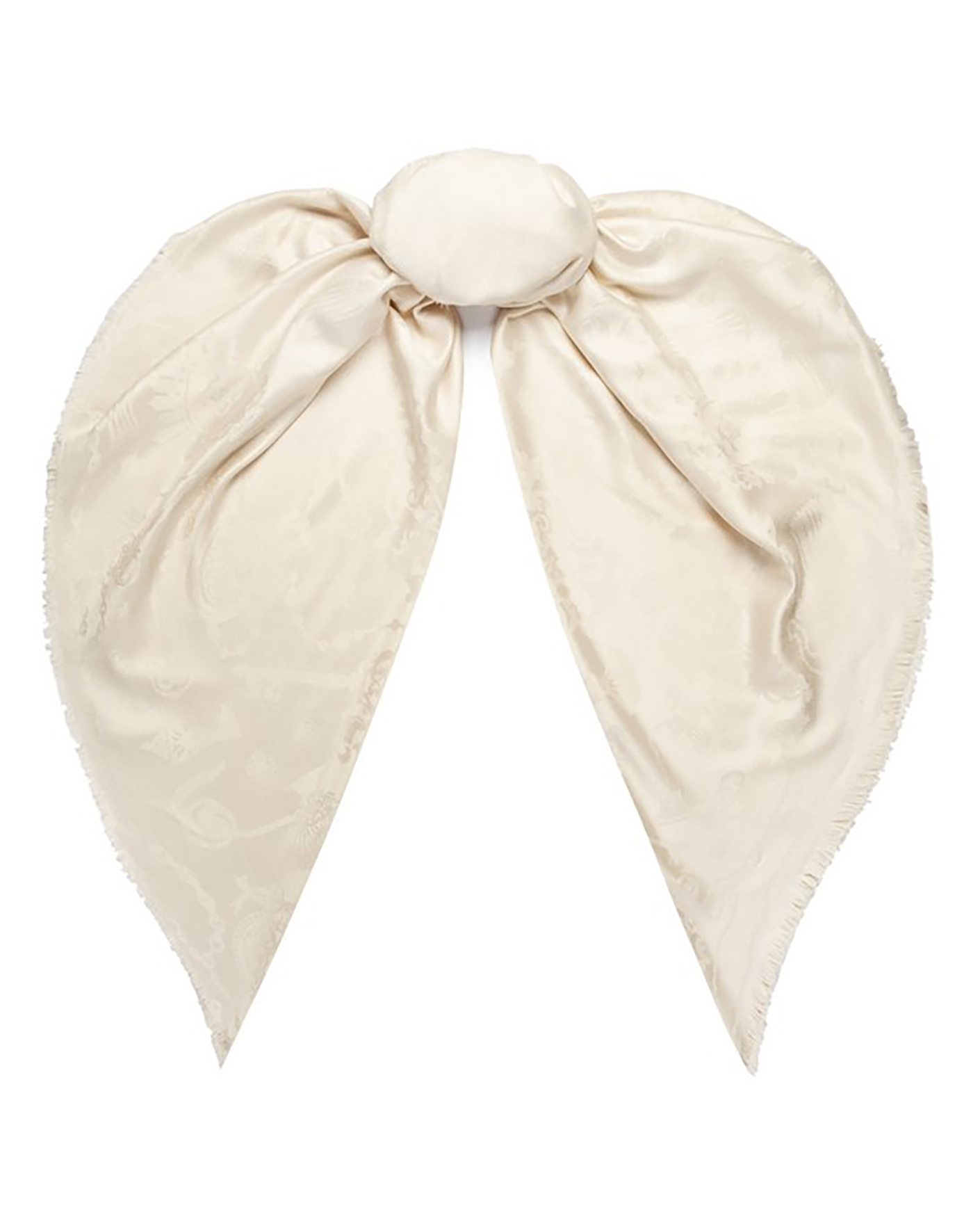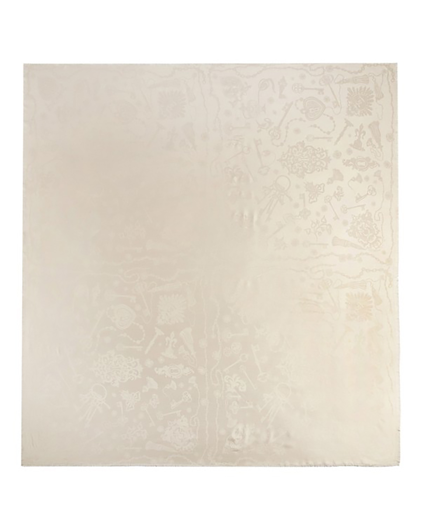 Платок Eleganzza белого цвета в строчный рисунок. Модель квадратной формы 135*135. Платок - стильный аксесуар для дополнения образа.