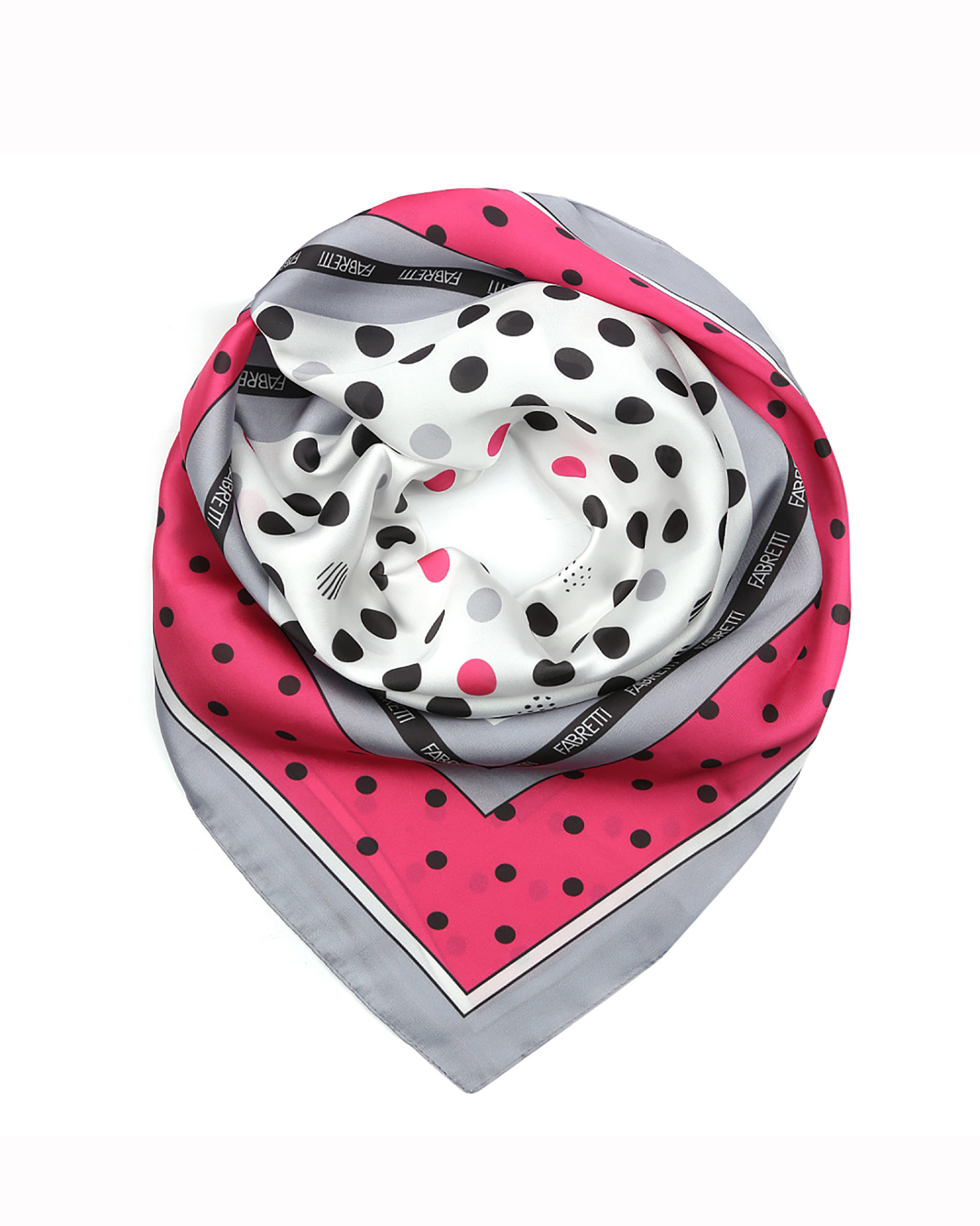 Платок Fabretti розового цвета в принт горох. Модель квадратной формы. Платок - стильный аксессуар для завершения образа.