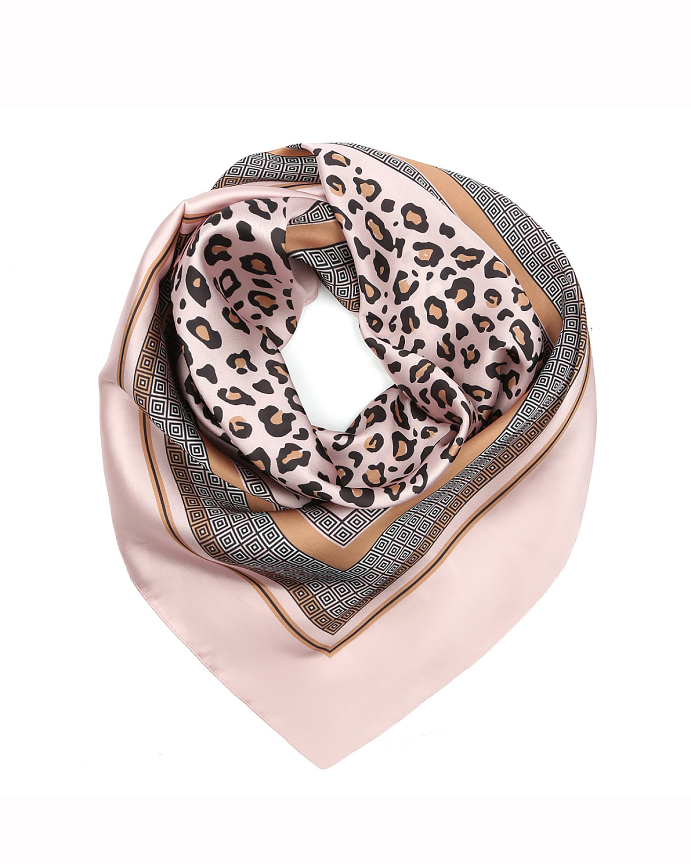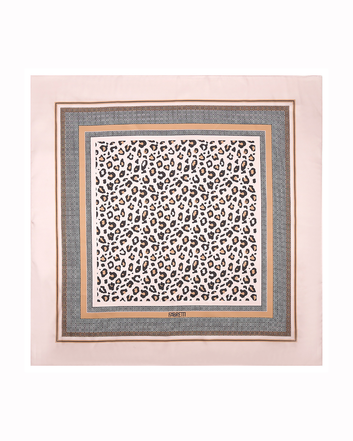 Платок Fabretti бежево-розового цвета в леопардовый и геометрический принт. Модель квадратной формы. Платок - стильный аксессуар для завершения образа.