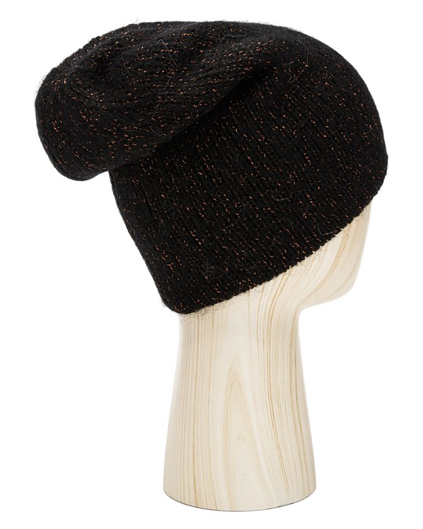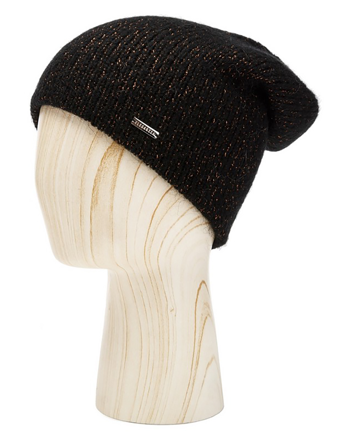 Удлиненная шапка Eleganzza черного цвета с люрексом. Модель станет идеальным дополнением к вашим классическим образам и согреет в холодную погоду.