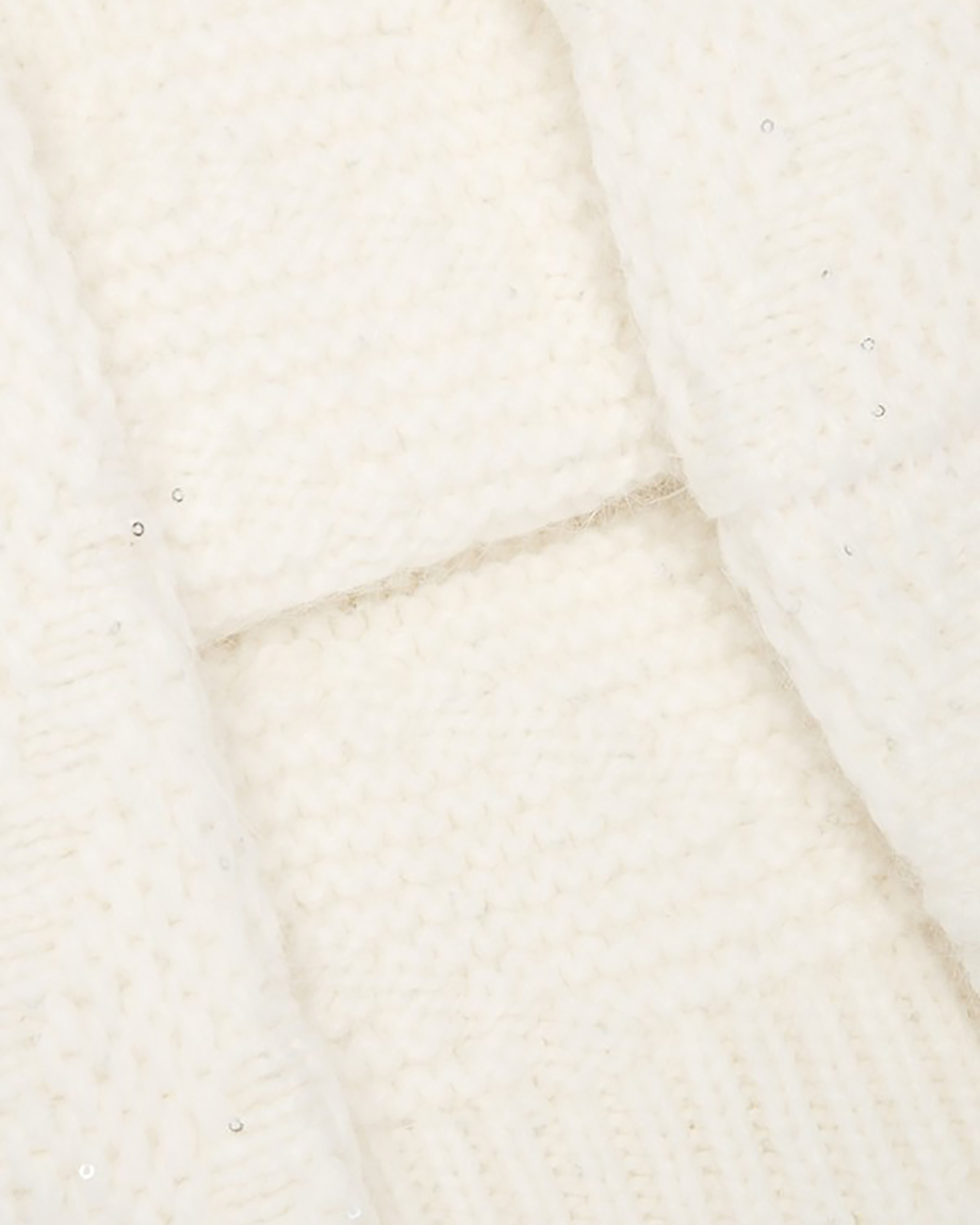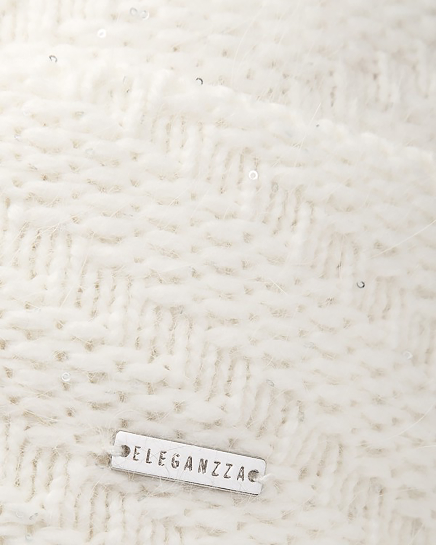 Демисезонная шапка Eleganzza белого цвета в геометрическую текстуру с люрексом. Объемная модель с отворотом идеально подойдет под любой ваш цветовой гардероб.