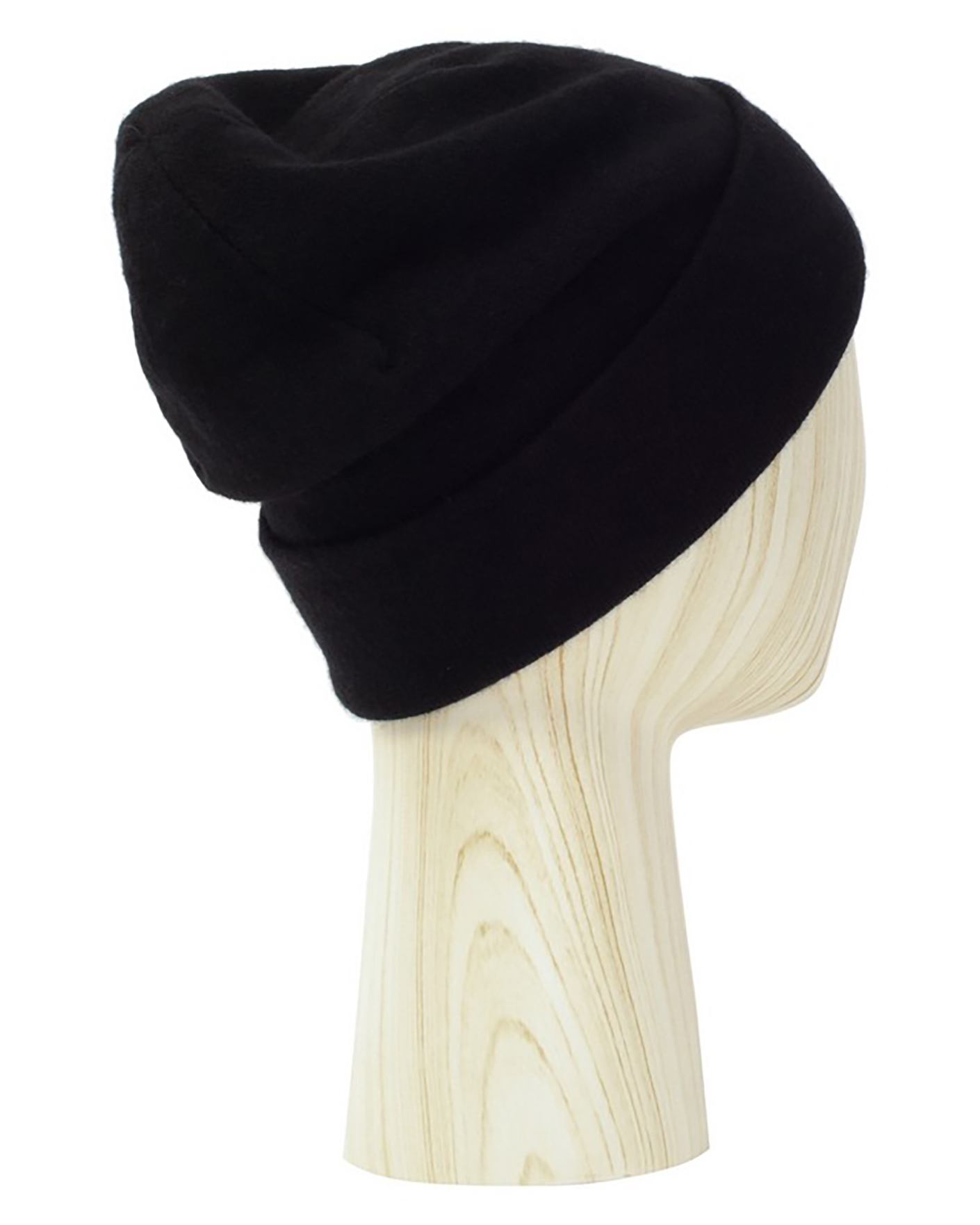 Шапка Eleganzza черного цвета выполнена из 100% кашемира. Объемная модель в мелкий вертикальный строчный рисунок, которая легко драпируется, идеально подойдет под любой ваш цветовой гардероб.