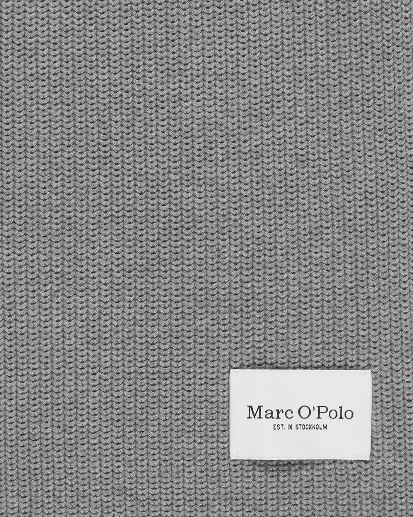 Базовый шарф Marc O'Polo серого цвета в строчный рисунок. Модель вытянутой прямоугольной формы с небольшой нашивкой с логотипом. Шарф станет незаменимым аксессуаром на каждый день.