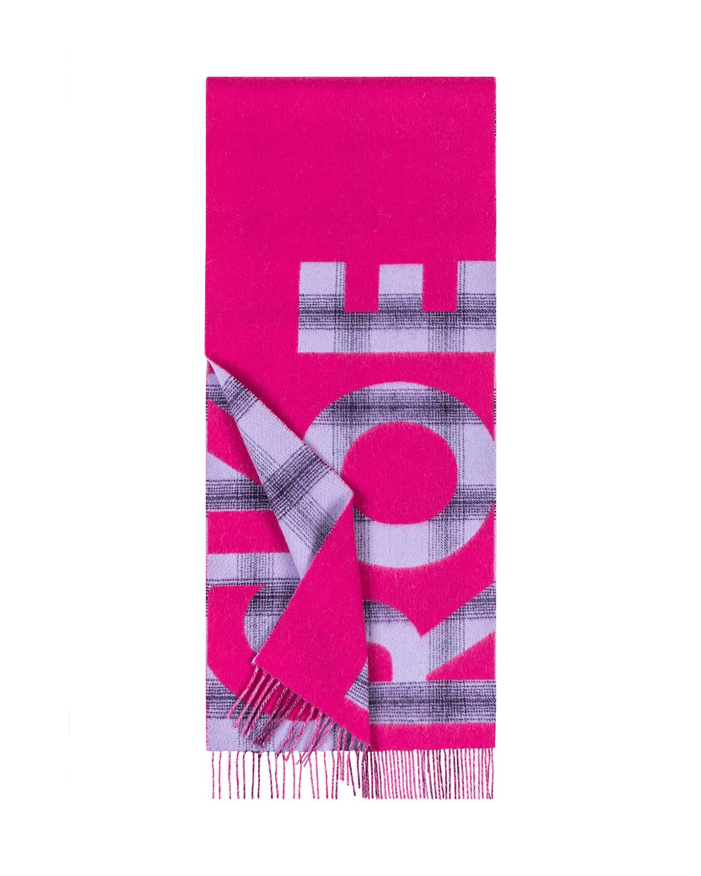 Яркий шарф Roeckl розового цвета с клетчатым узором в виде логотипа и бахромой по низу с открытыми краями. Шерстяной шарф прекрасно согревает зимой.