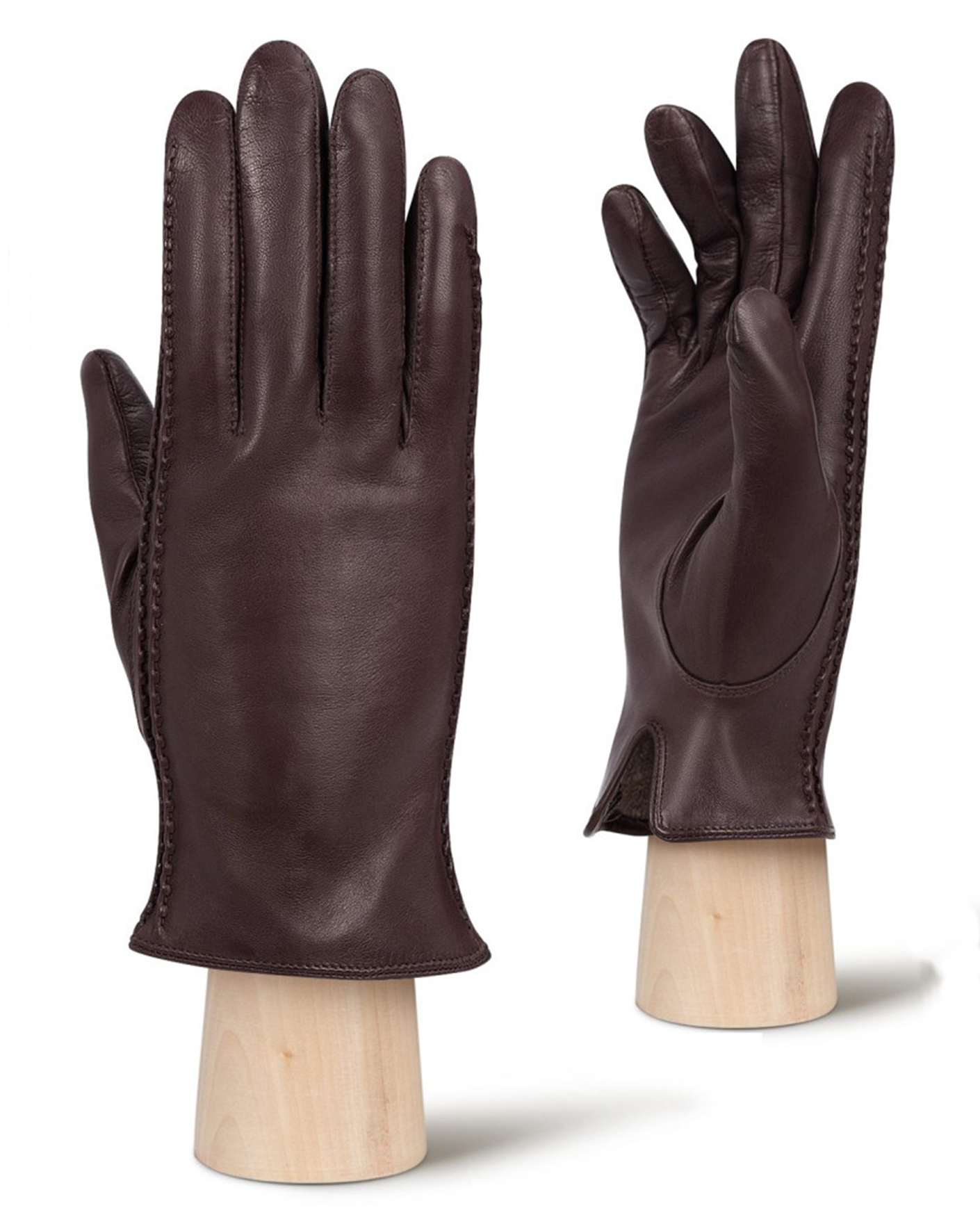 Перчатки Eleganzza коричневого цвета выполнены из 100% кожи ягнёнка. Модель с декоративными жгутами. Нижний край перчатки и разрез на ладонной стороне с окантовкой. Теплые перчатки станут незаменимым аксессуаром на каждый день.