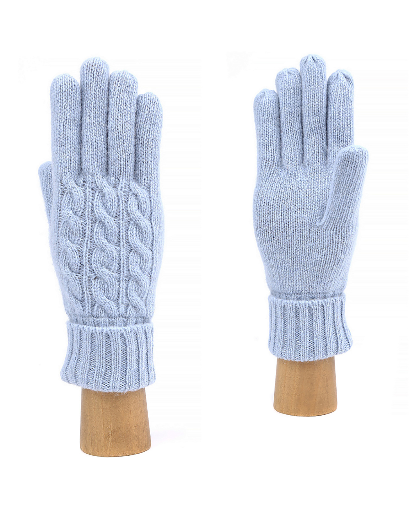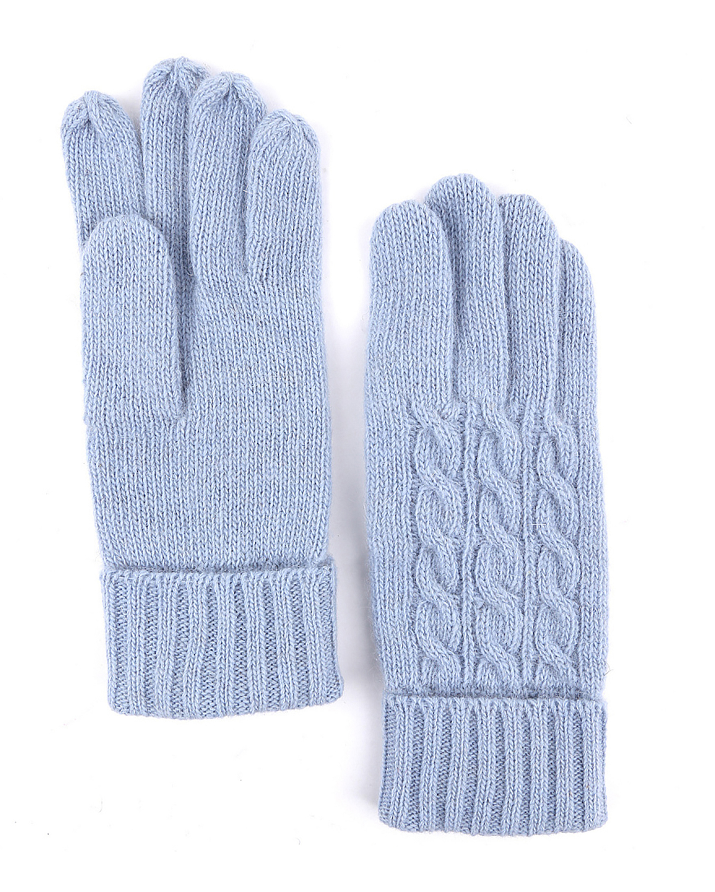 Теплые перчатки Fabretti голубого цвета в строчный рисунок и рисунок-косичка. Шерстяная модель с удлиненной манжетой на ребристой резинке с отворотом. Универсальные перчатки на каждый день.