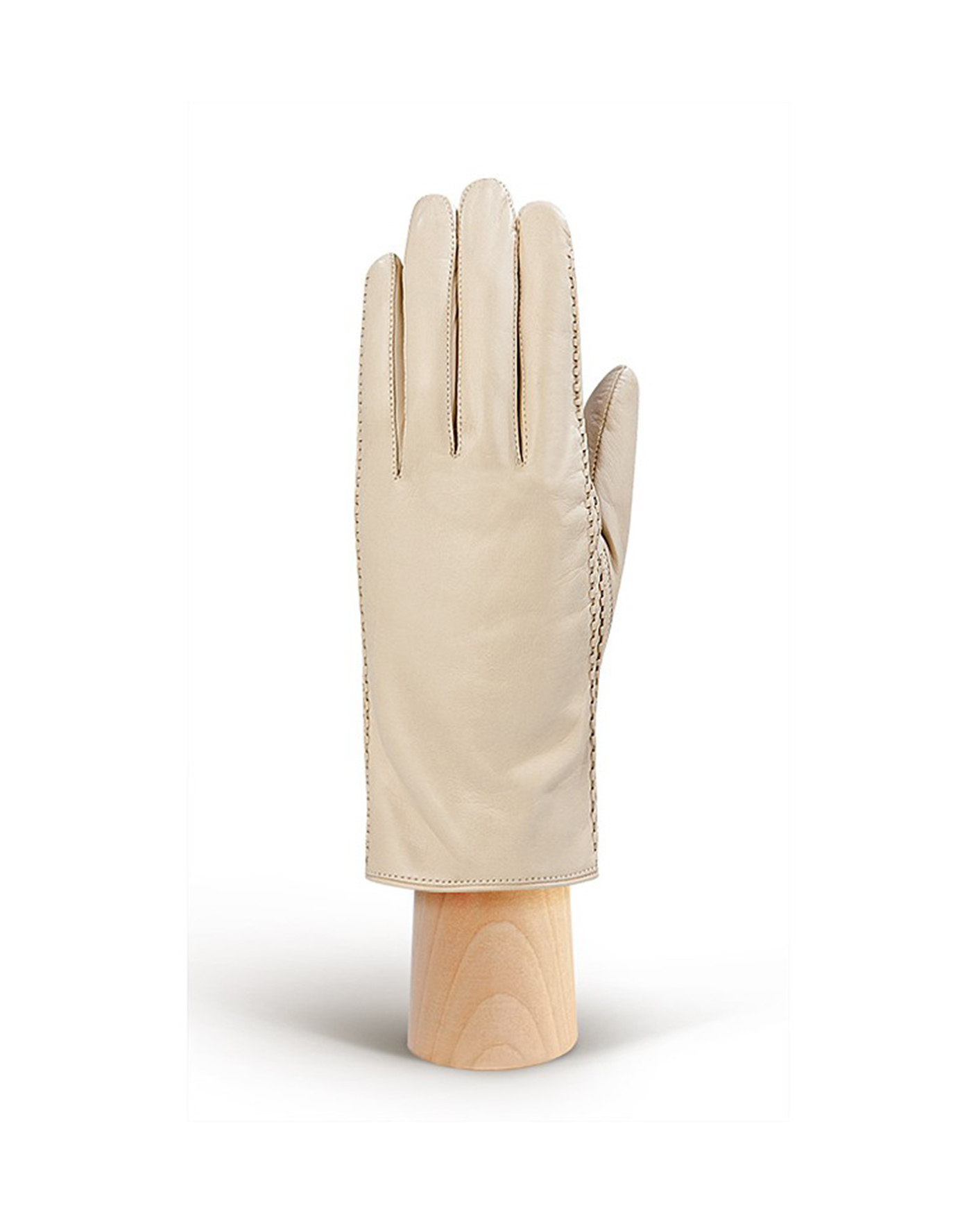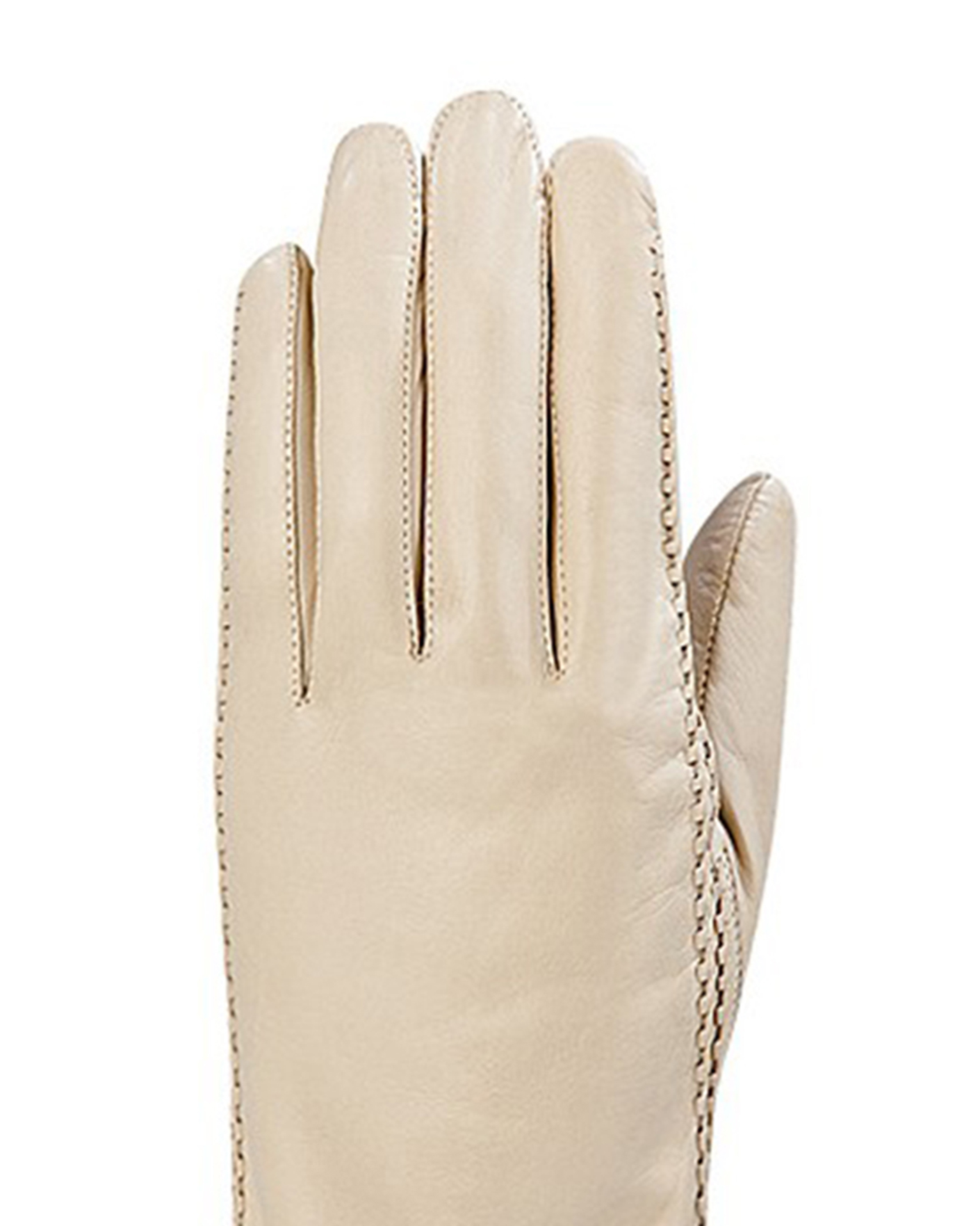 Перчатки Eleganzza кремового цвета выполнены из 100% кожи ягнёнка. Модель с декоративными жгутами. Нижний край перчатки и разрез на ладонной стороне с окантовкой. Теплые перчатки станут незаменимым аксессуаром на каждый день.