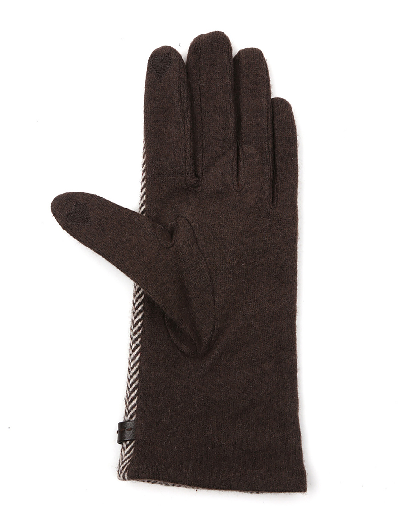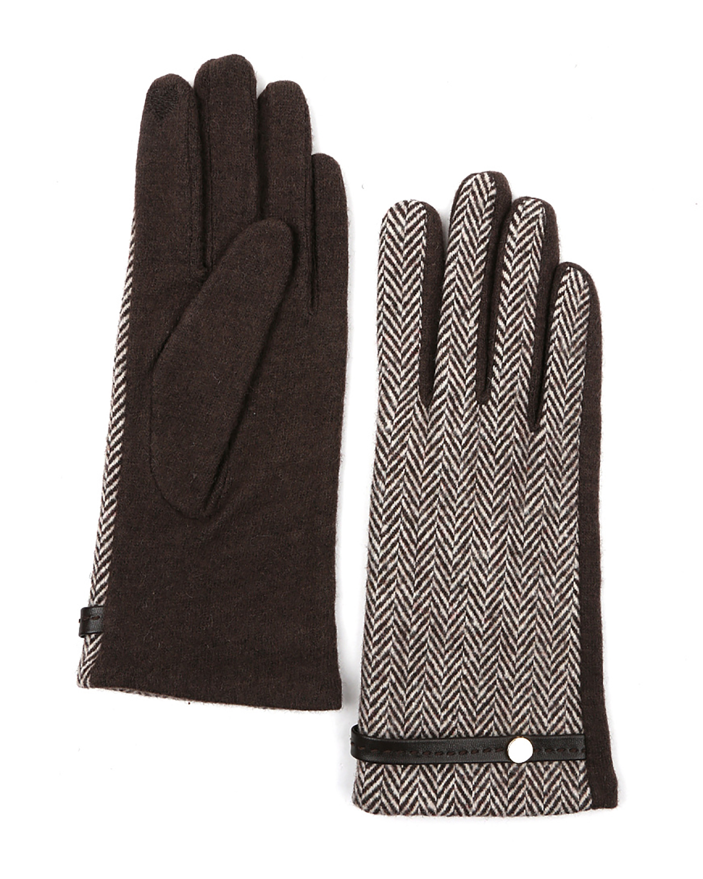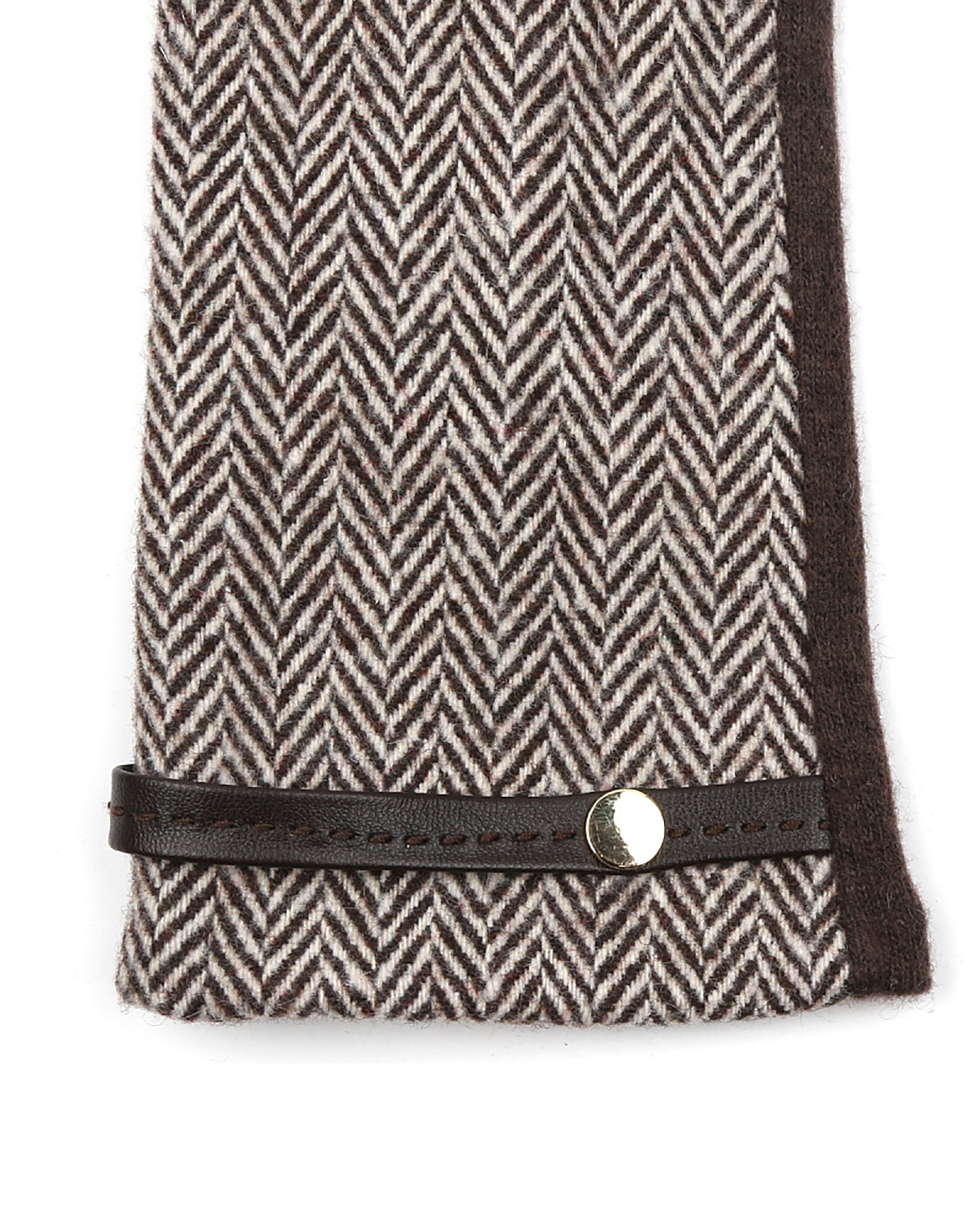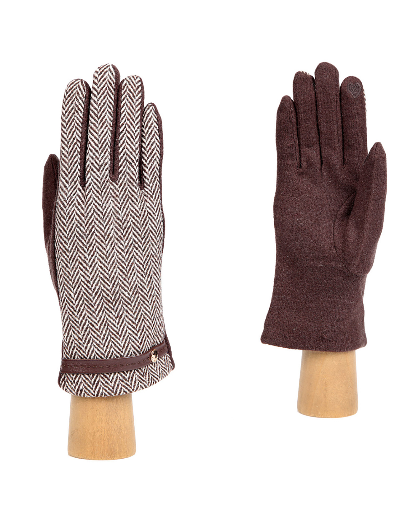 Текстильные перчатки Fabretti коричневого цвета в рисунок-елочка. Модель декорирована ремешком с металлическим логотипом. Перчатки - стильный аксессуар на каждый день.