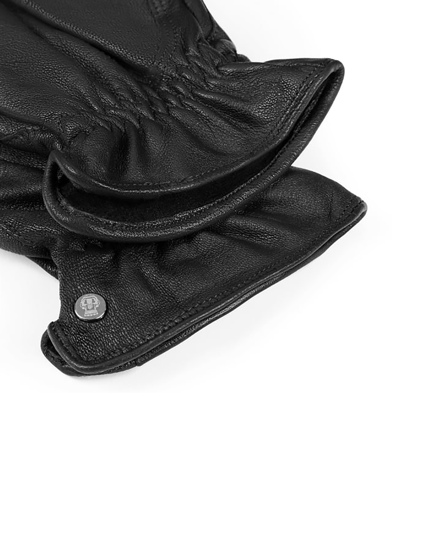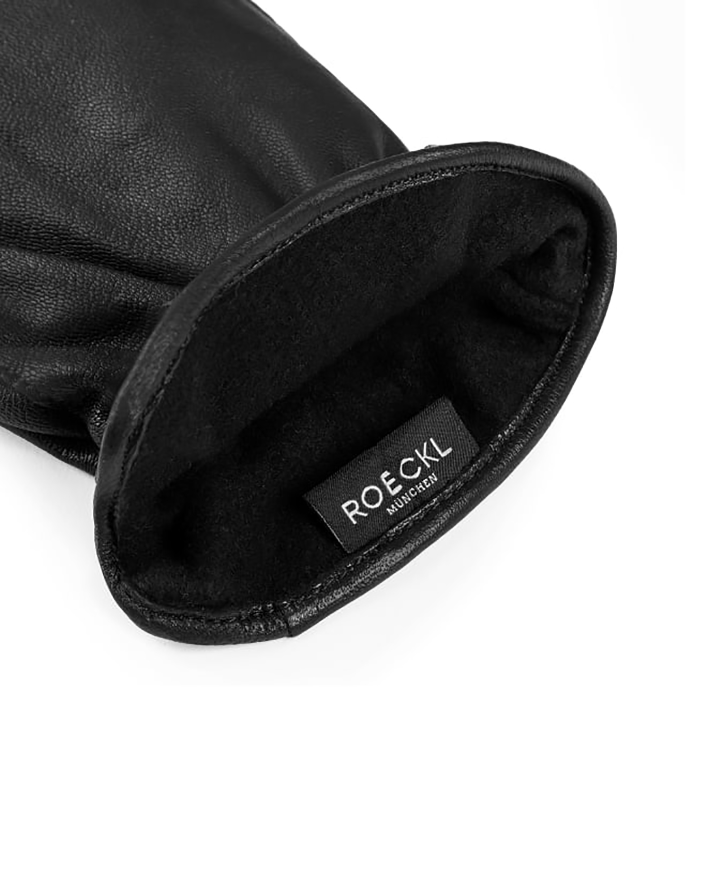 Перчатки Roeckl черного цвета выполнены из 100% кожи. Модель со сборкой  на резинке у запястья. Прекрасный вариант для межсезонья и европейской зимы.