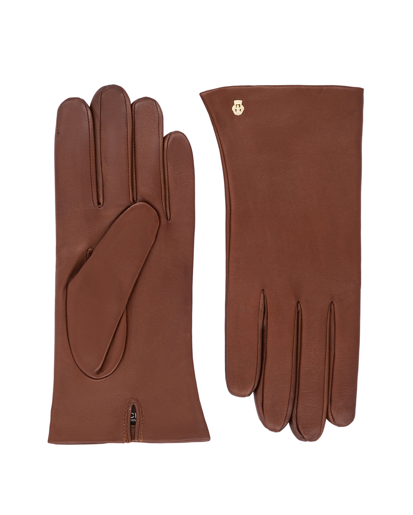 Классические перчатки Roeckl коричневого цвета. Модель из 100% кожи, разрез для ладони и подкладка из чистого шелка облегчают надевание. Перчатки станут настоящим универсалом в любое время года.