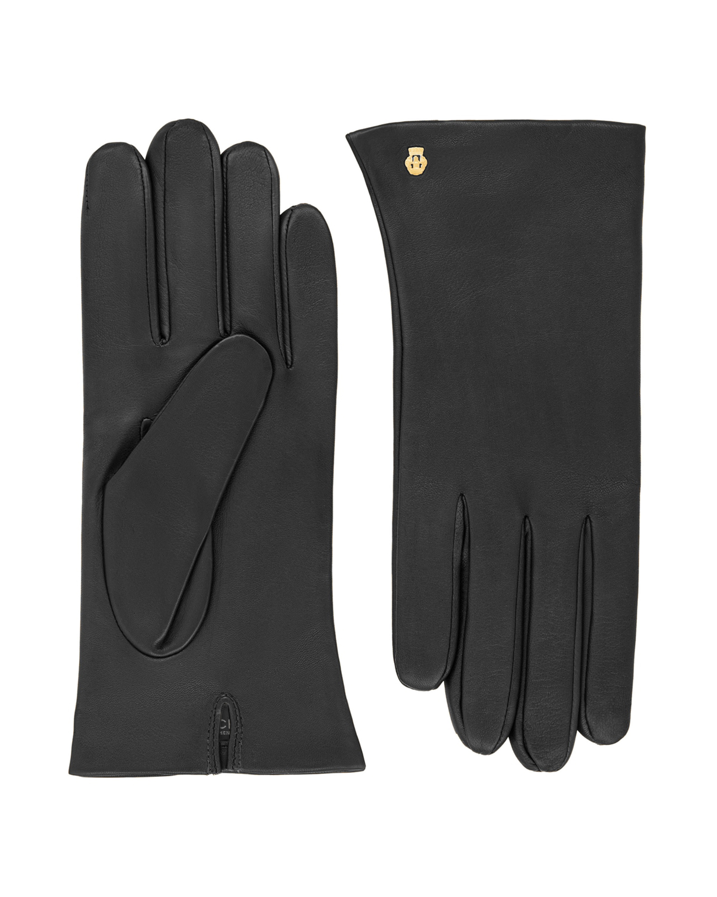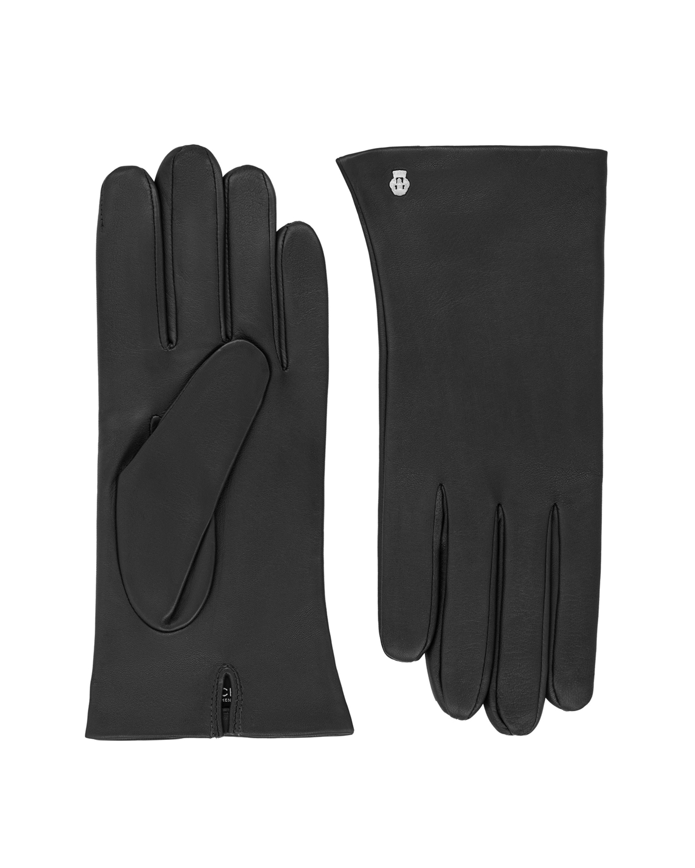 Классические перчатки Roeckl сине-черного цвета. Модель из 100% кожи, разрез для ладони и подкладка из чистого шелка облегчают надевание. Перчатки станут настоящим универсалом в любое время года.