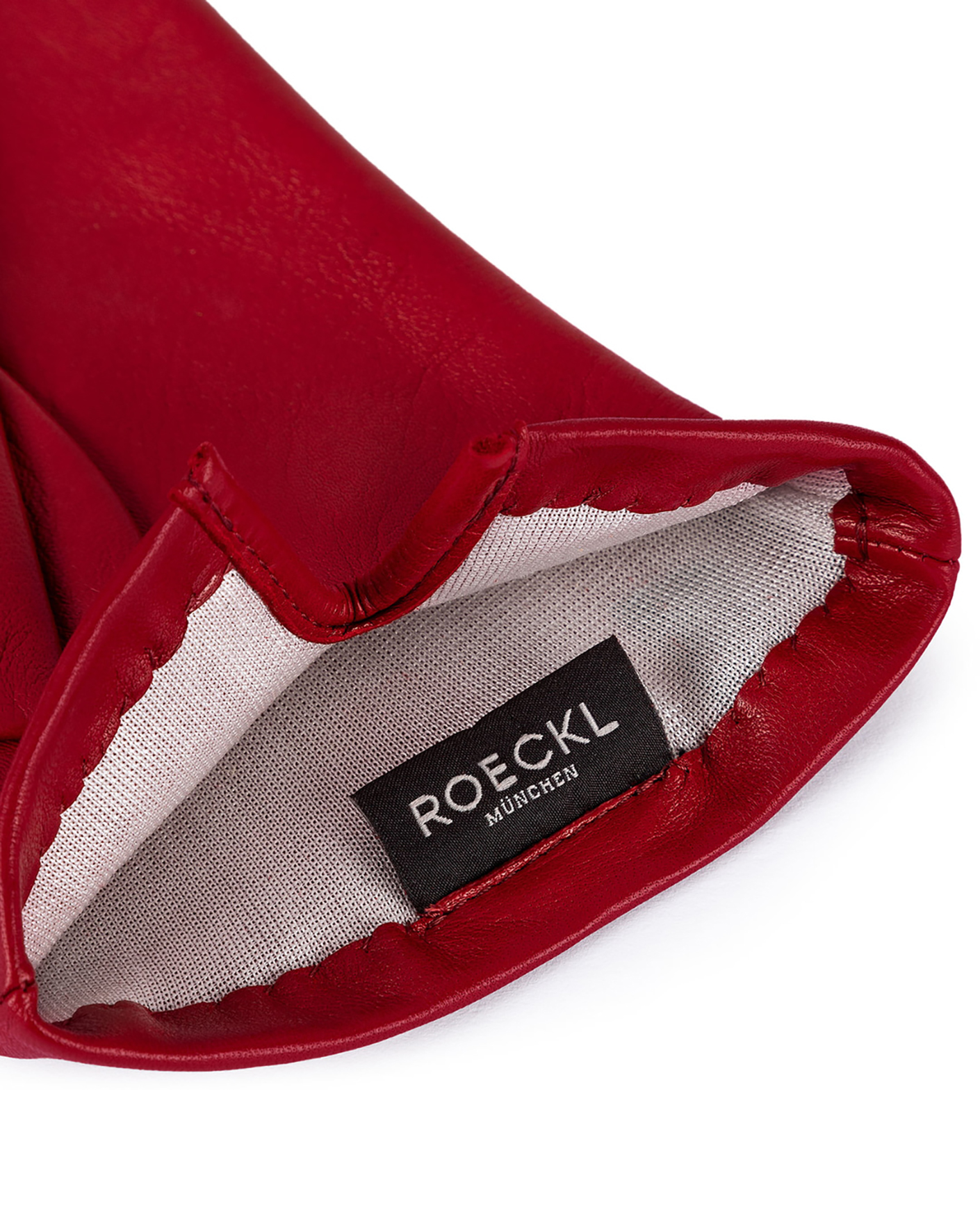 Классические перчатки Roeckl красного цвета. Модель из 100% кожи, разрез для ладони и подкладка из чистого шелка облегчают надевание. Перчатки станут настоящим универсалом в любое время года.