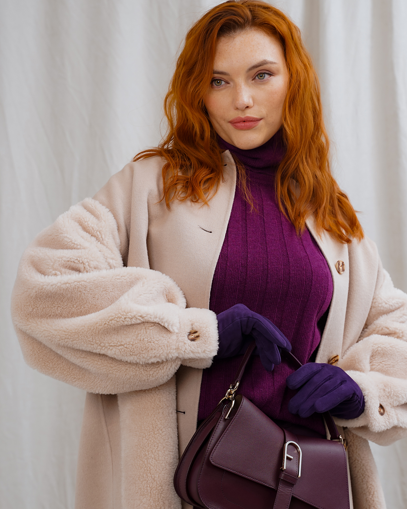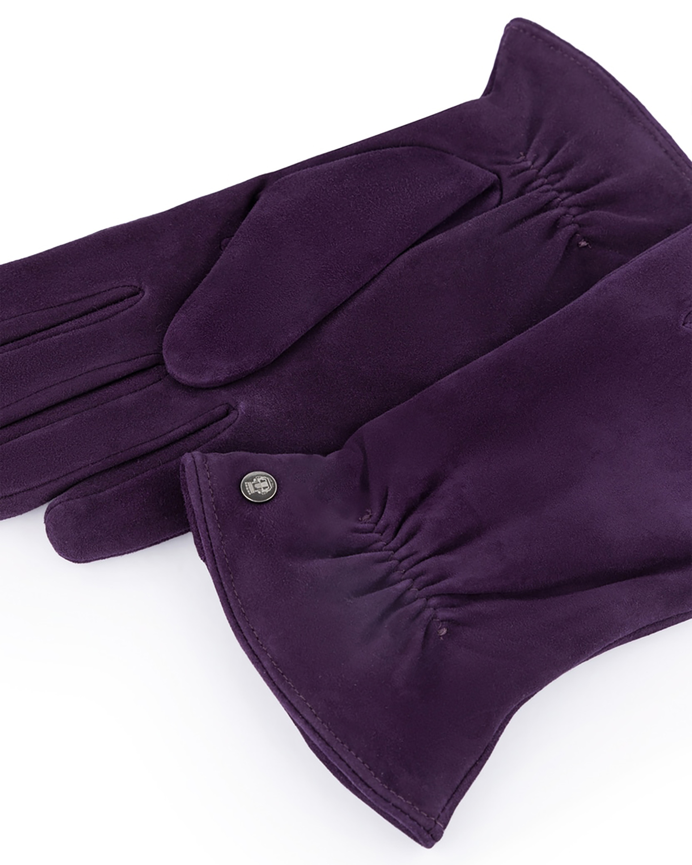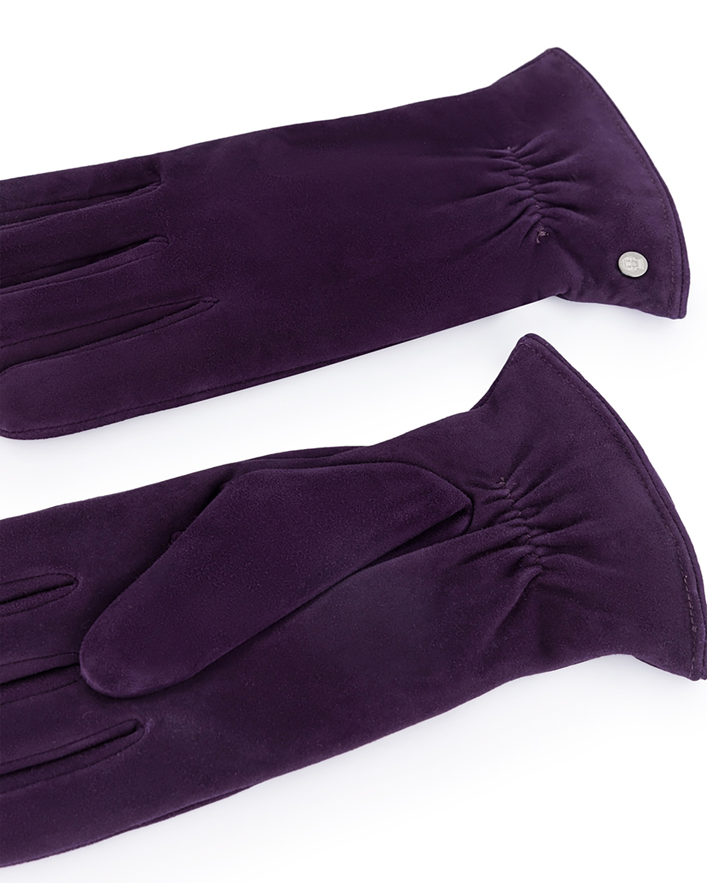 Перчатки Roeckl фиолетового цвета выполнены из 100% замши с ворсом. Тонкая резинка на запястье гарантирует оптимальную посадку и высокий уровень комфорта. Перчатки станут идеальным спутником в холодные дни.