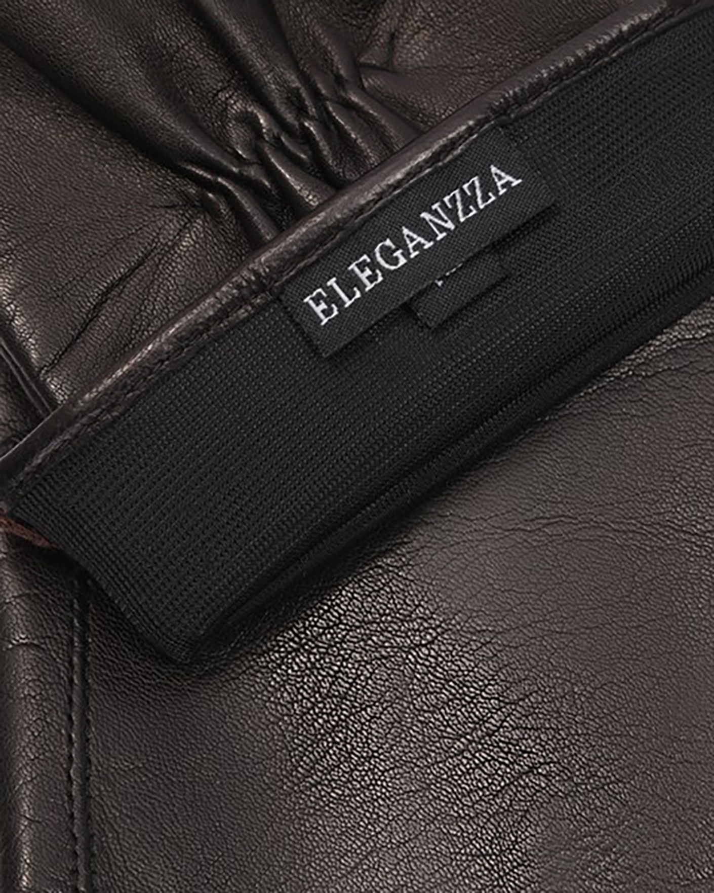Классические перчатки Eleganzza черного цвета выполнены из 100% кожи. Модель с декоративными швами в тон, имеется резинка на ладонной стороне. Перчатки - стильный аксессуар на каждый день.