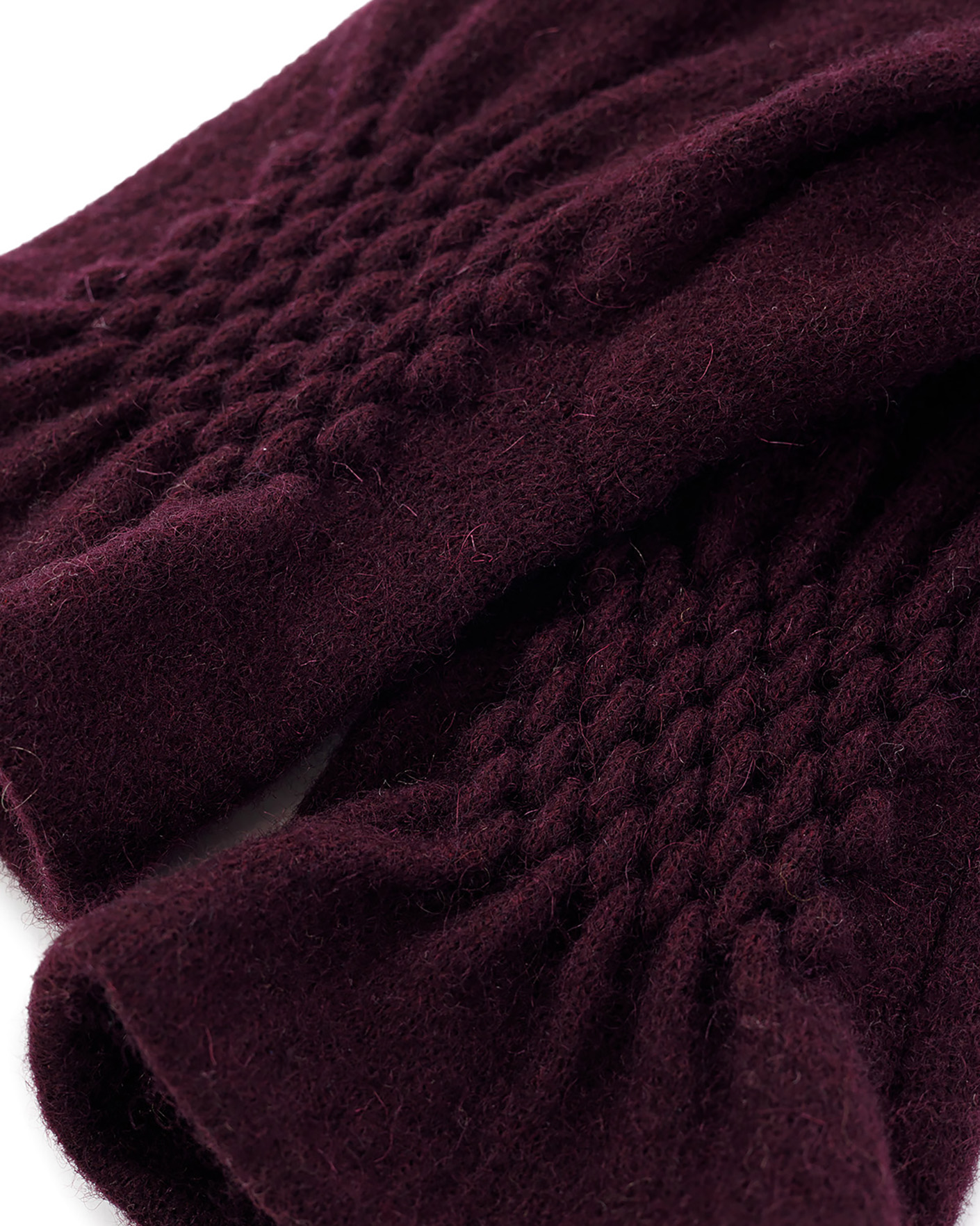 Перчатки Labbra бордового цвета. Шерстяная модель с декоративными защипами на лицевой стороне в районе манжеты. Перчатки особенно устойчивы к атмосферным воздействиям и защищает от холода.