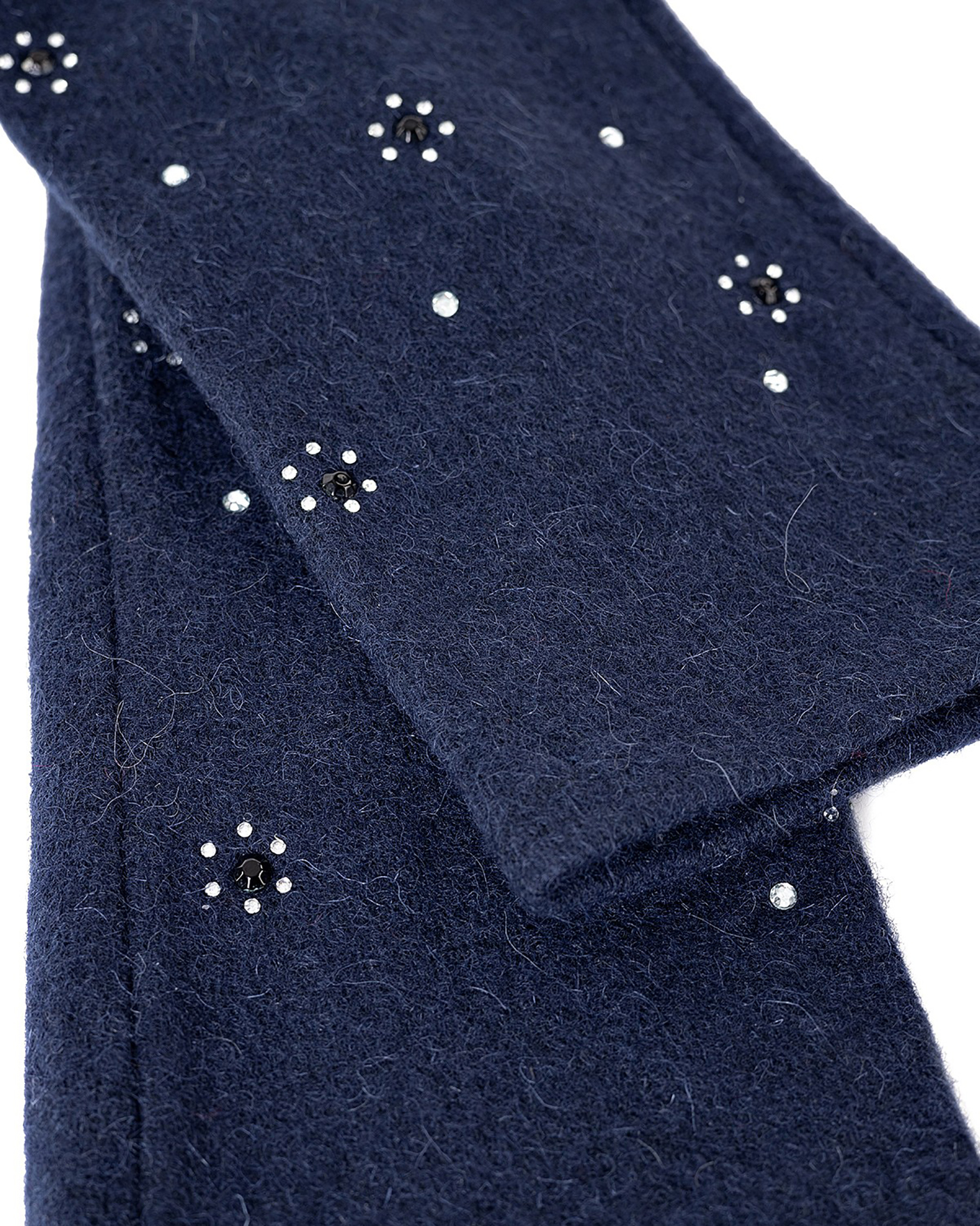 Перчатки Labbra синего цвета без подкладки. На лицевой стороне модели декоративная отделка из мелких страз в виде цветочков. Перчатки - стильный аксессуар на каждый день.
