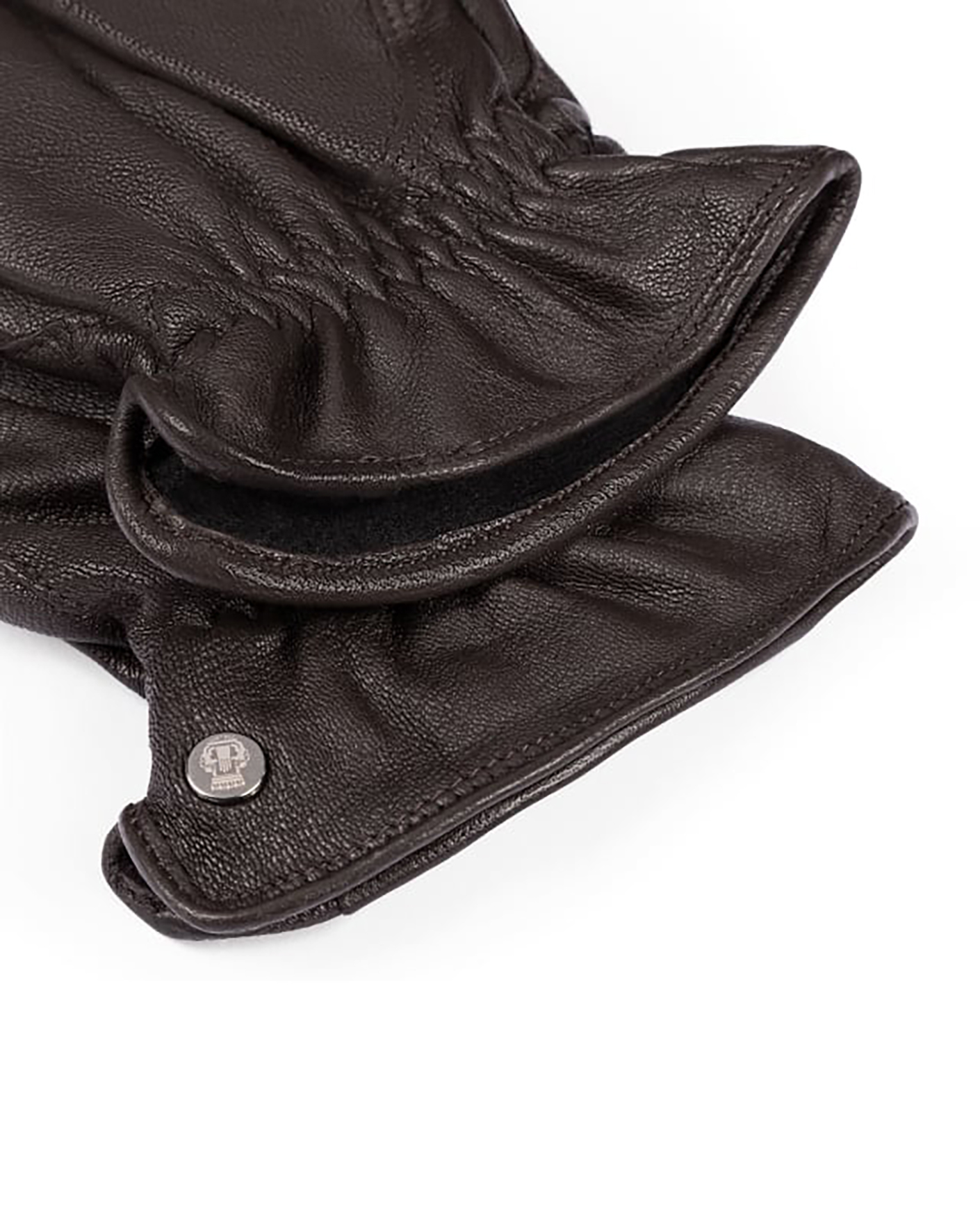 Перчатки Roeckl темно-коричневого цвета выполнены из 100% кожи. Модель со сборкой  на резинке у запястья. Прекрасный вариант для межсезонья и европейской зимы.