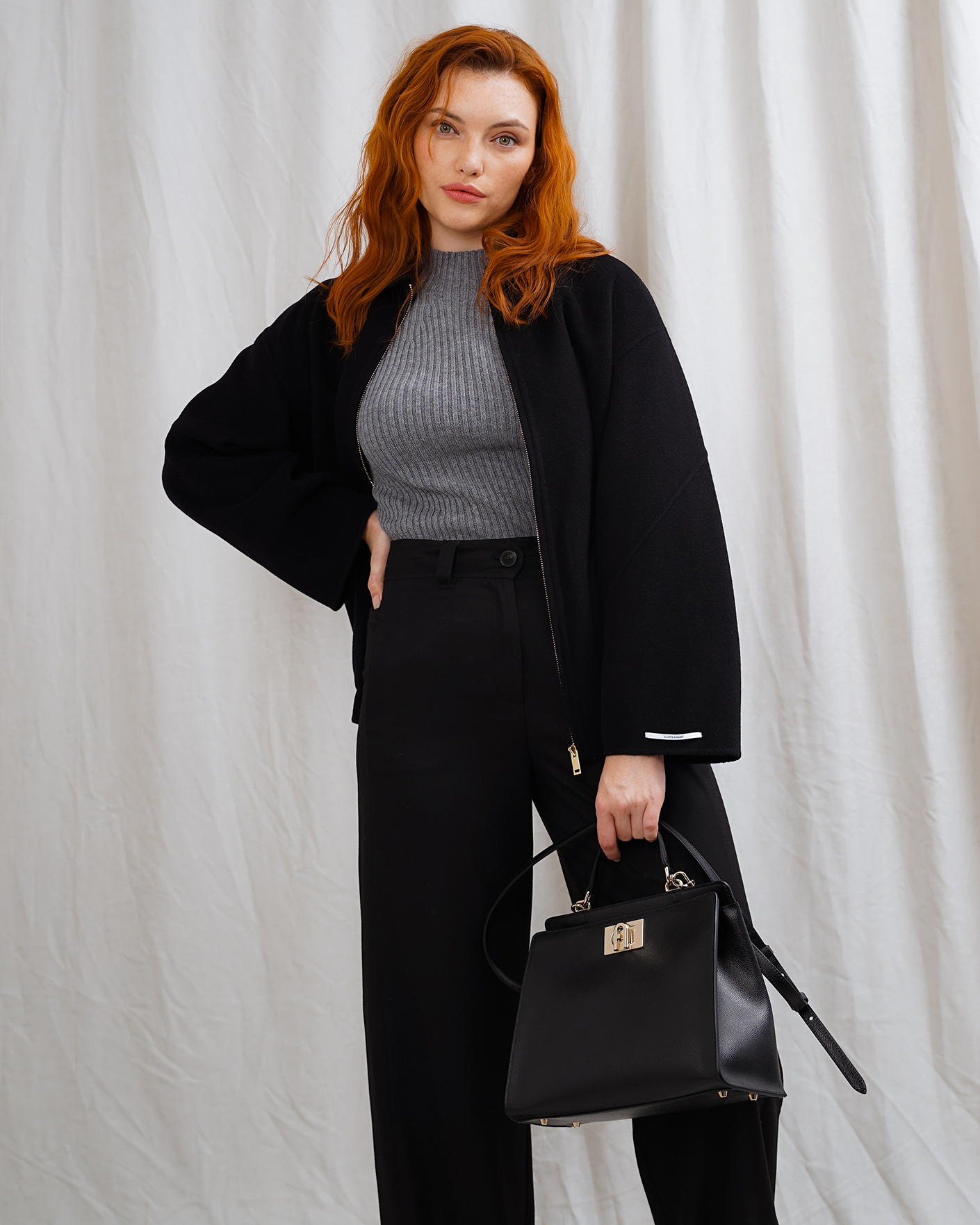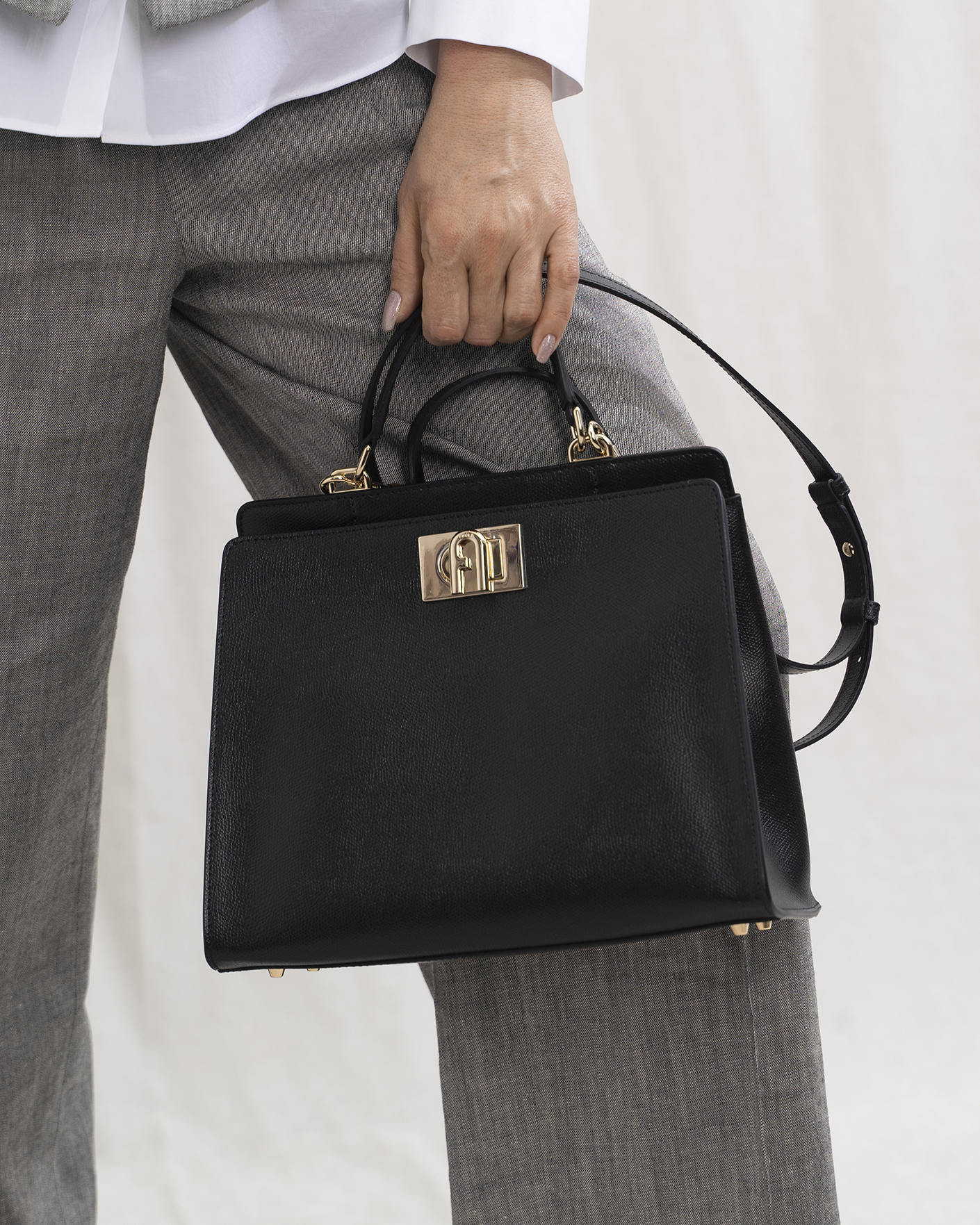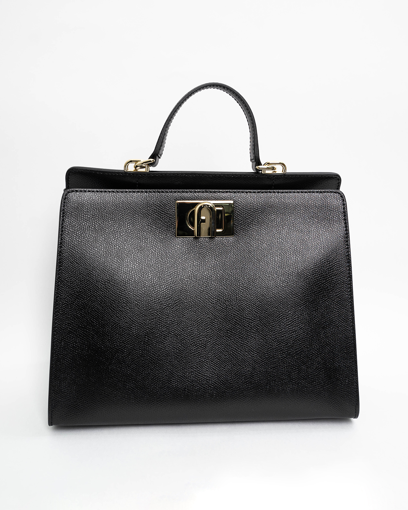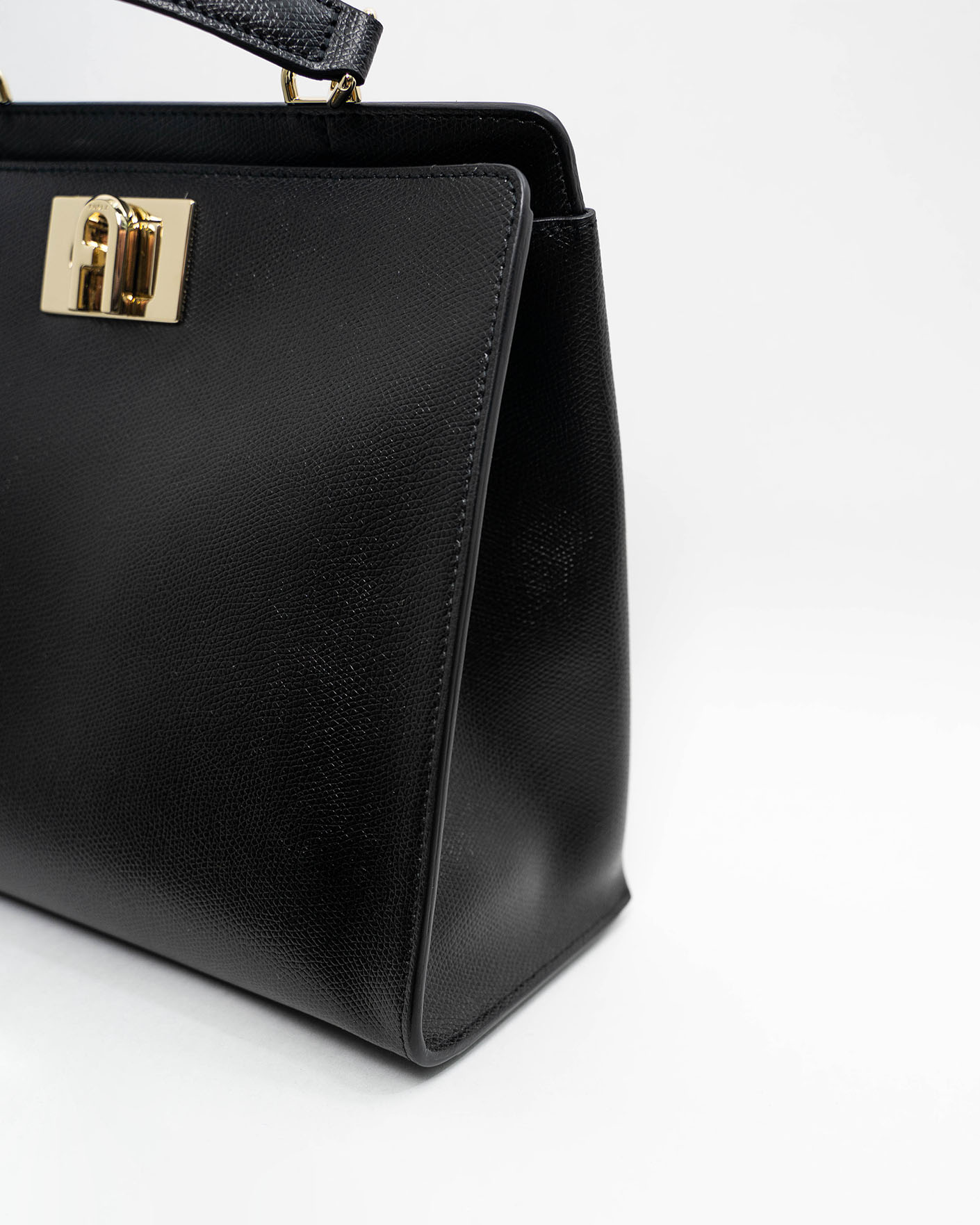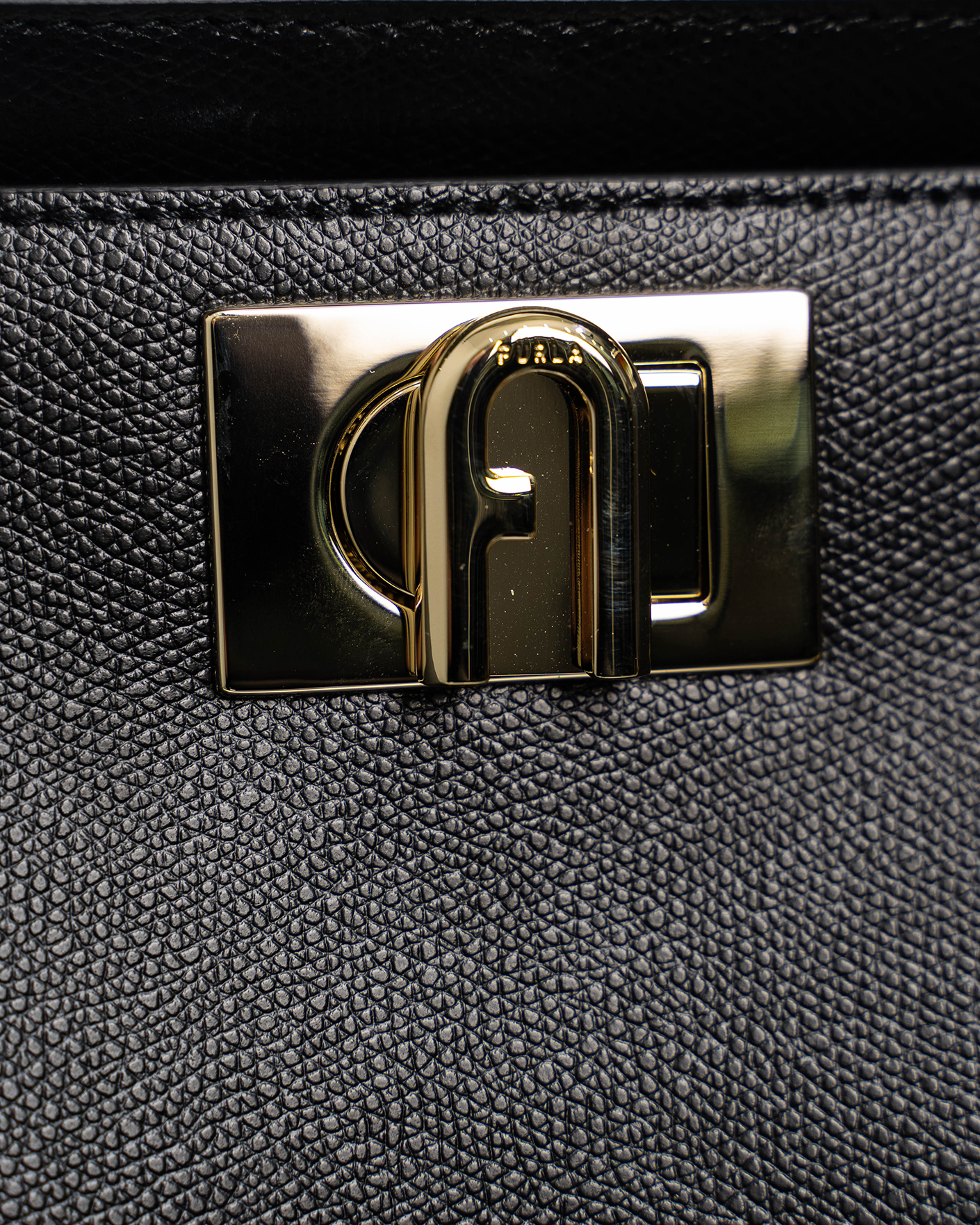 Сумка Furla 1927 черного цвета выполнена из тисненой кожи. Модель с двумя ручками имеет компактную форму, идеально подходящую для хранения мелких предметов и личных вещей. Благодаря съемному регулируемому ремню из кожи модель можно носить на плече или через плечо.