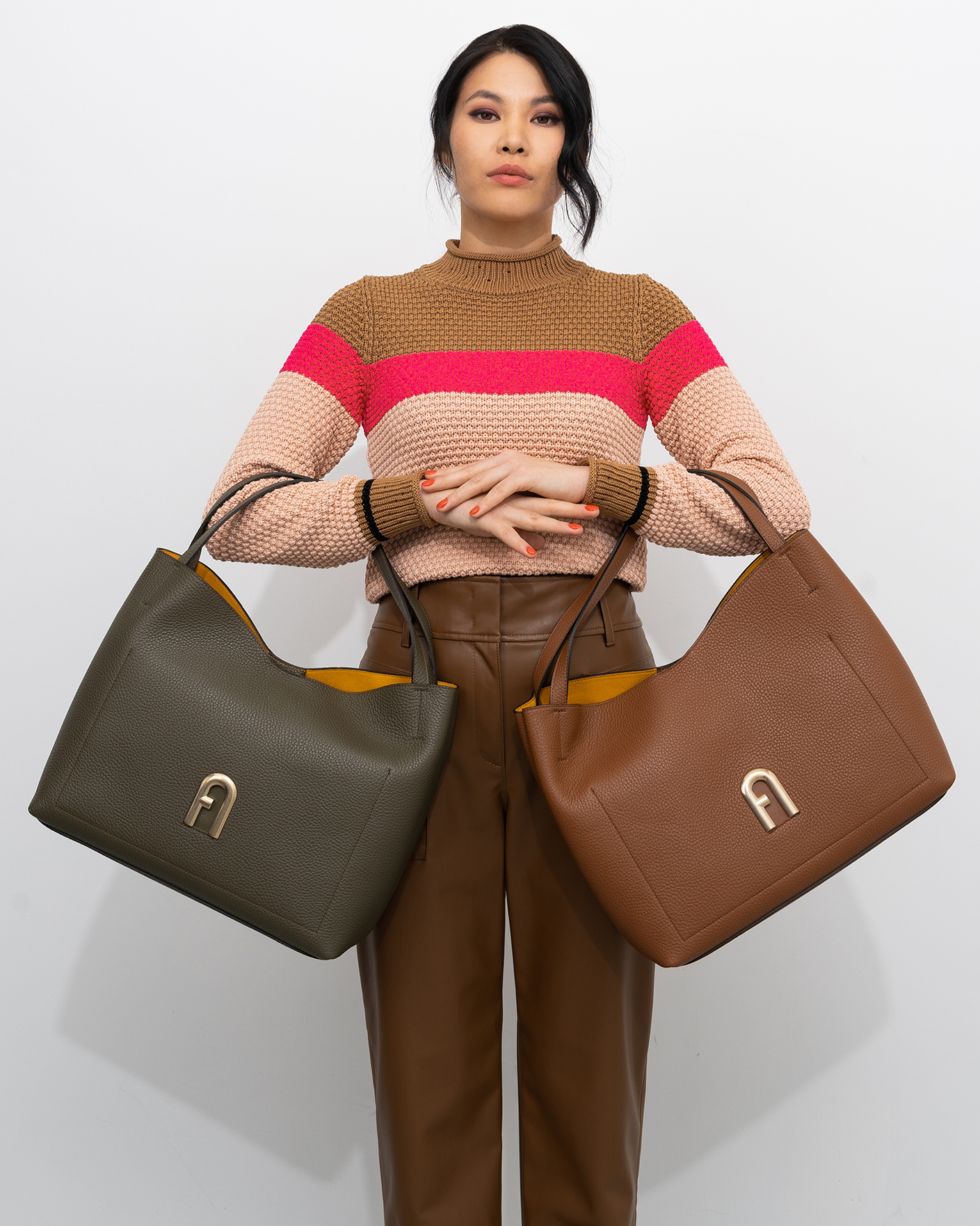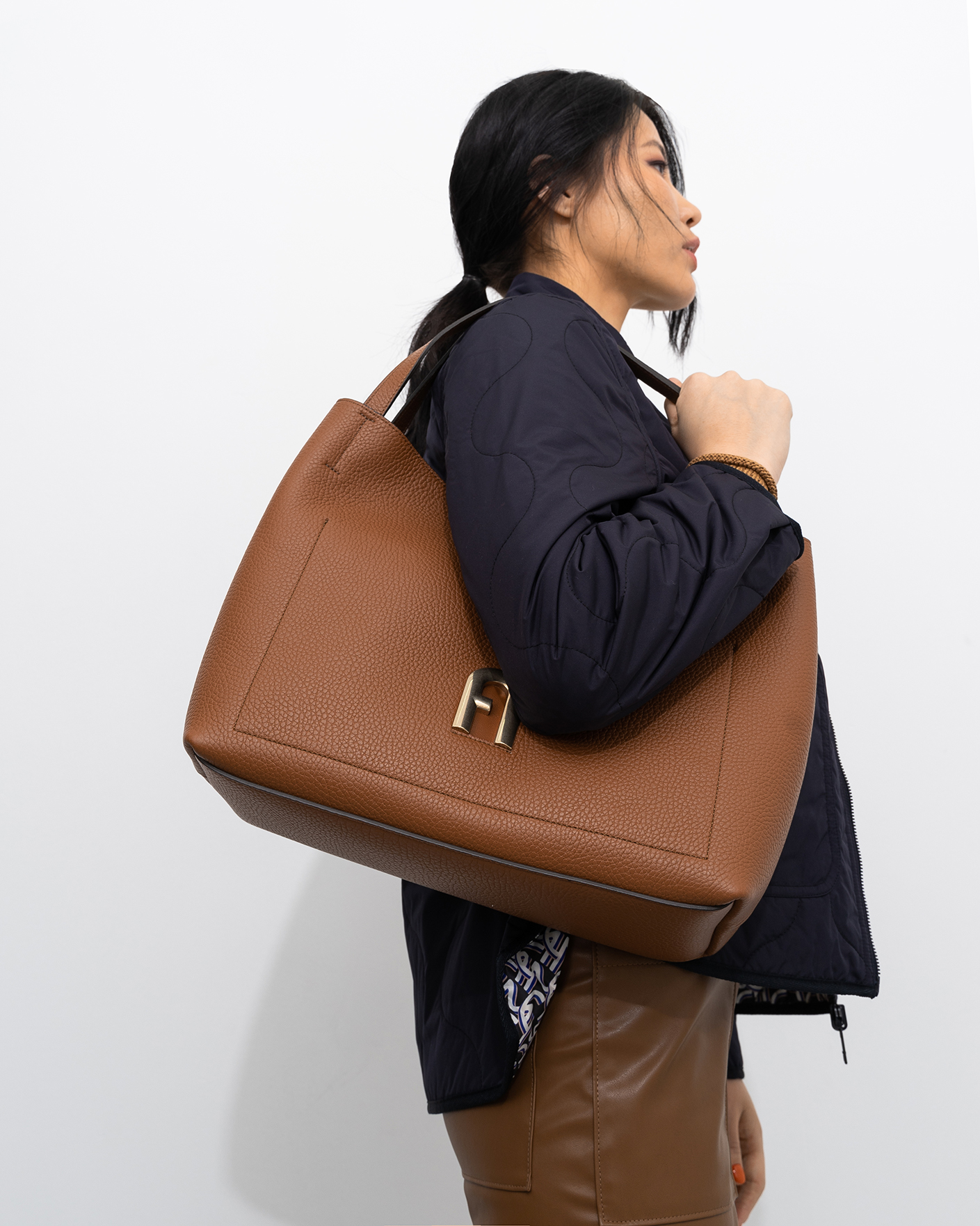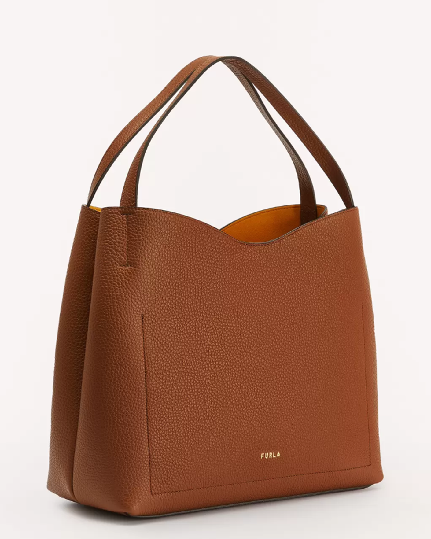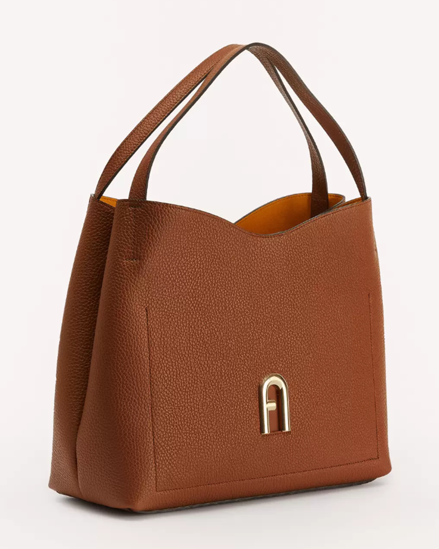 Сумка Furla Primula светло-коричневого цвета выполнена из зерненой телячьей кожи с контрастной внутренней подкладкой. Большой размер позволяет всегда иметь под рукой все самое необходимое. Модель с мягкой конструкцией, металлическими деталями и фирменным логотипом Arch с гальваническим золотистым покрытием и тисненым логотипом Furla сзади.