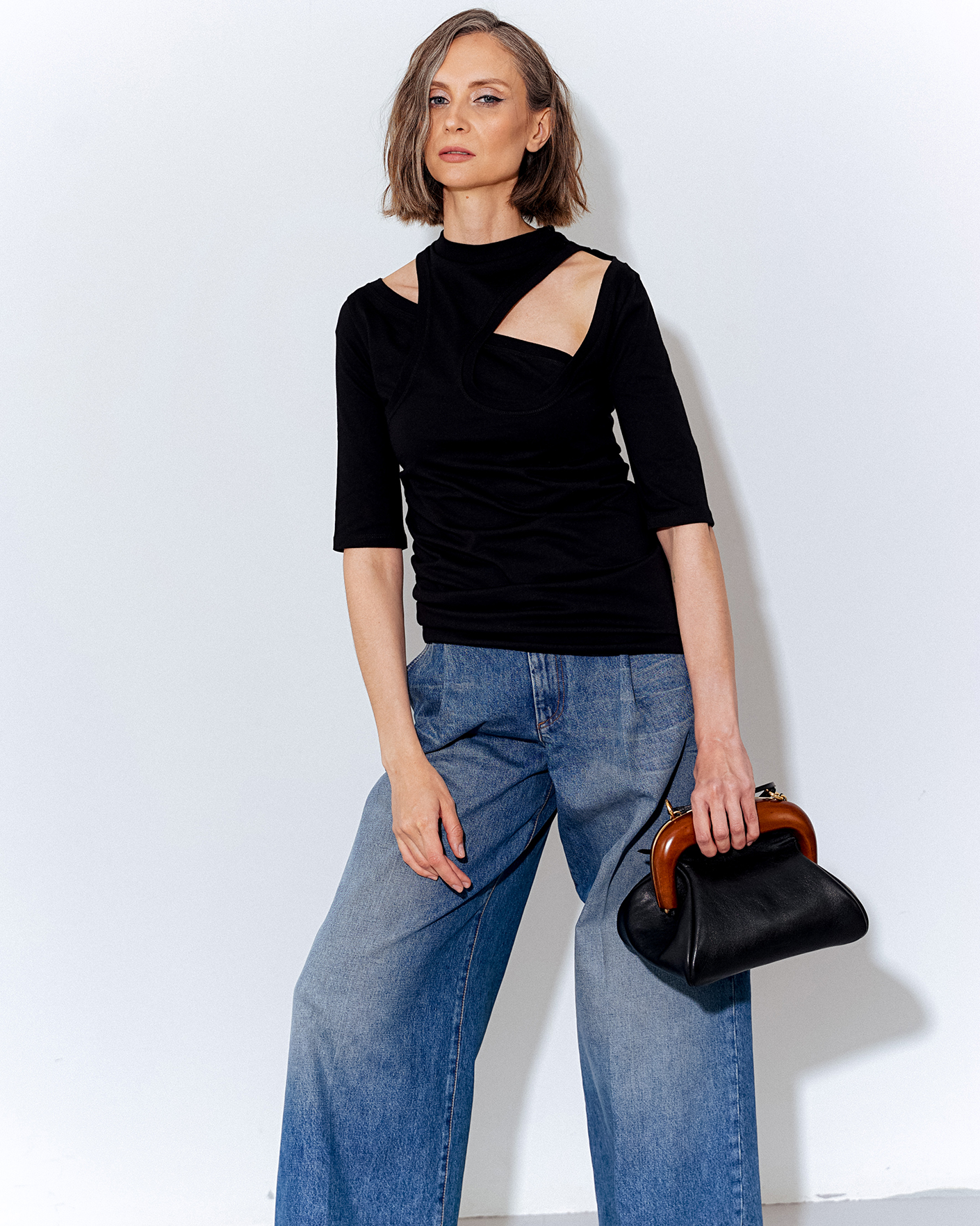 Мини сумка Sportmax бежевого цвета в строчный рисунок. Мягкая модель из 100% кожи. Крупная деревянная рама дополнена вставкой с латунной отделкой с сатиновым эффектом. Можно носить в руке как клатч или через плечо благодаря регулируемому и съемному плечевому ремню.