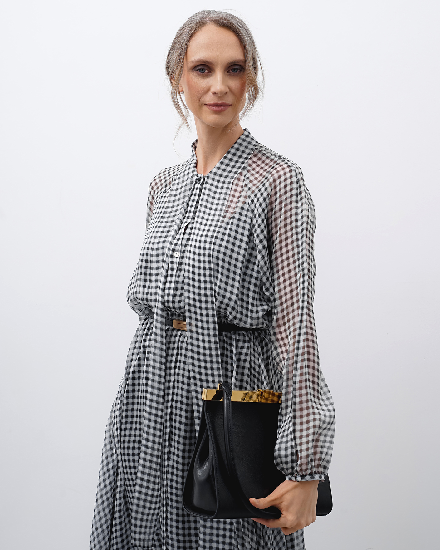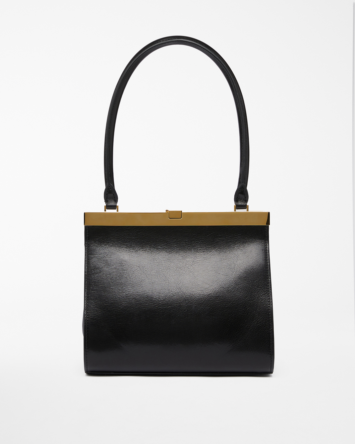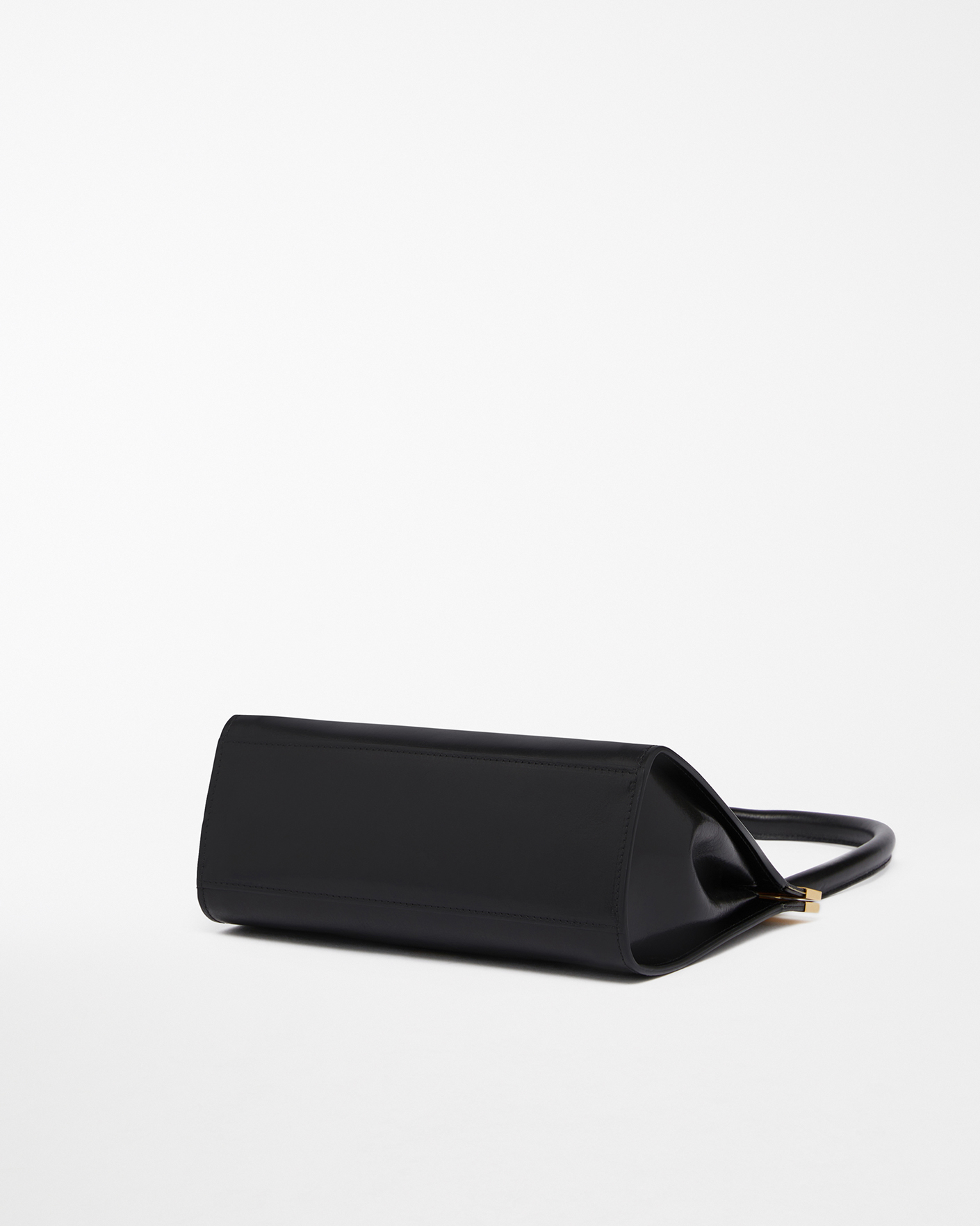 Сумка Sportmax черного цвета. Модель строгой структурированной конструкцией, с прямоугольной застежкой из блестящего металла с гальваническим покрытием в верхней части. Два отделения, центральный карман на молнии. Сумку можно носить на плече с помощью круглого ремешка. Сумка идеально завершит ваш образ как на каждый день, так и на вечернее мероприятие.