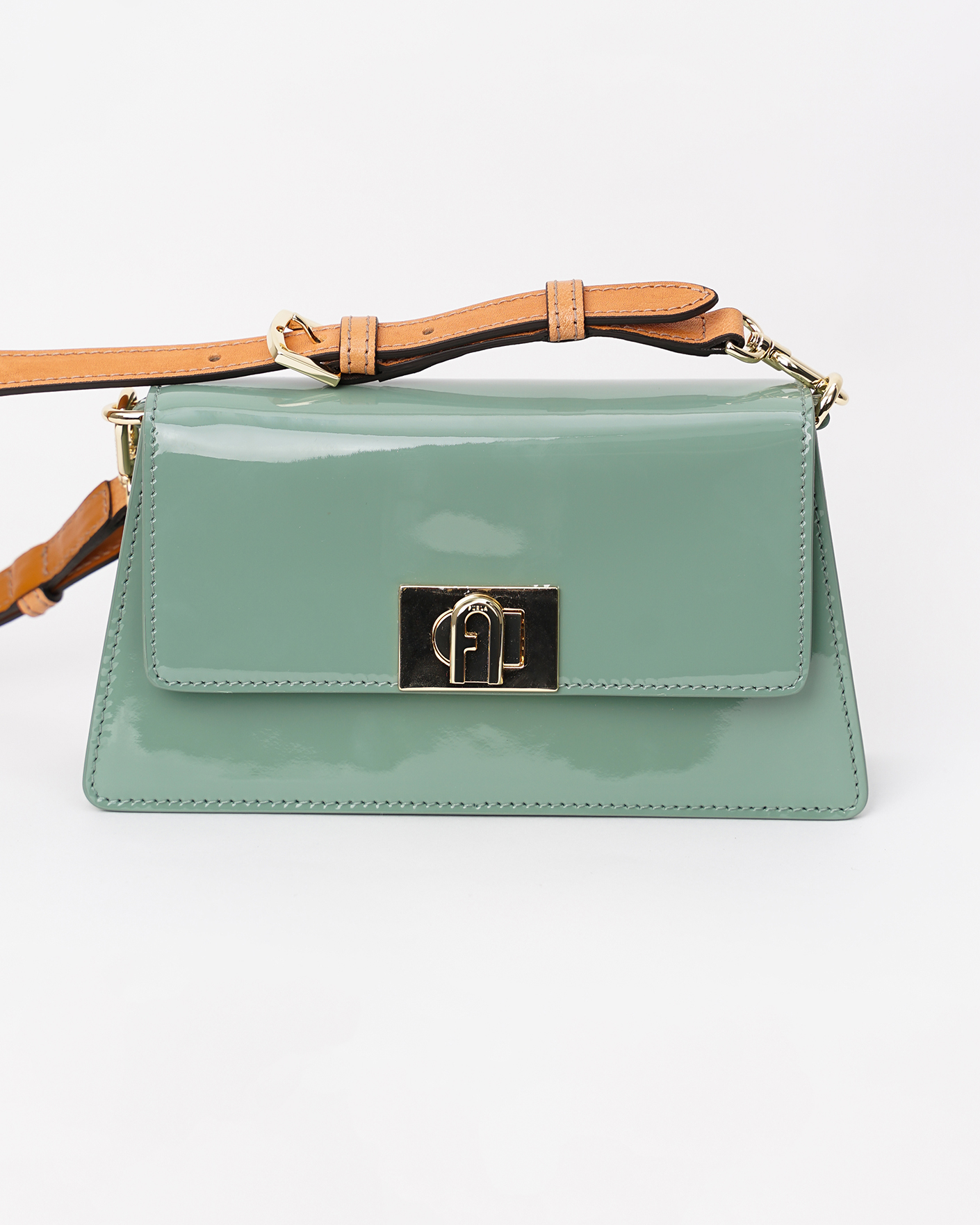 Мини-сумка Furla Zoe зеленого цвета выполнена из лакированной и воловьей кожи. Модель с открытым внутренним карманом с клапанамом с поворотной застежкой в виде металлического логотипа. Дополнительный ремень также позволяет носить сумку через плечо. Благодаря своему компактному размеру модель станет идеальным аксессуаром на каждый день.