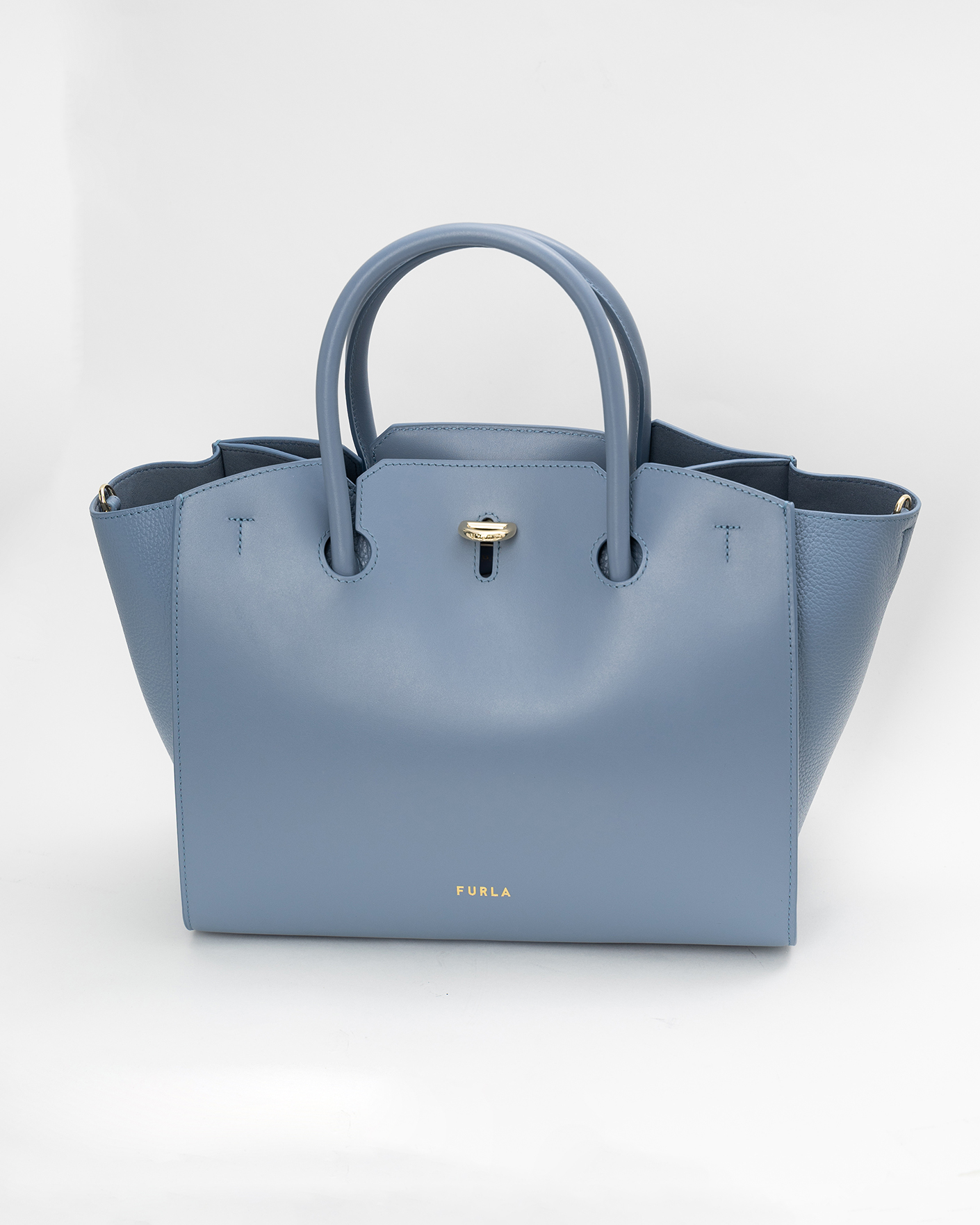 Сумка-тоут Furla Genesi серо-голубого цвета выполнена из 100% кожи. Модель с открытым внутренним карманом, внутренним карманом на молнии, имеется поворотный замок и тисненый логотип Furla. Двойные ручки позволяют носить модель в руке, а плечевой ремень – на плече. Дизайн средней жесткости позволяет разместить в сумке необходимые предметы, благодаря чему она отлично подойдет на каждый день.