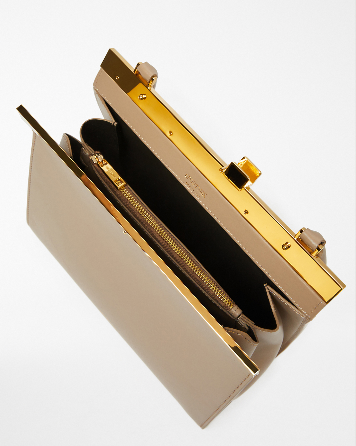 Сумка Sportmax бежевого цвета выполнена из 100% кожи. Модель строгой структурированной конструкцией, с прямоугольной застежкой из блестящего металла с гальваническим покрытием в верхней части. Два отделения, центральный карман на молнии. Сумку можно носить на плече с помощью круглого ремешка. Сумка идеально завершит ваш образ как на каждый день, так и на вечернее мероприятие.