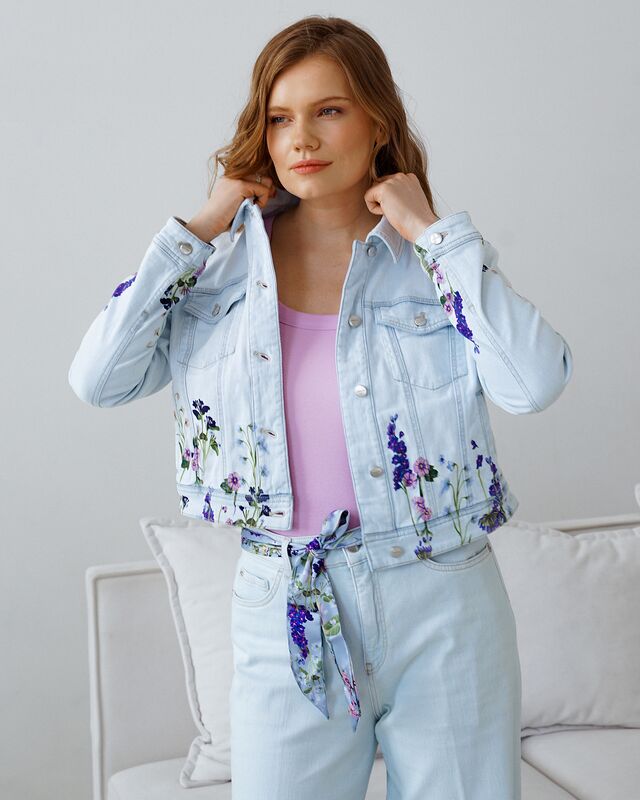 Короткие куртки из денима отлично дополнят летящие женственные образы с юбками и платьями.