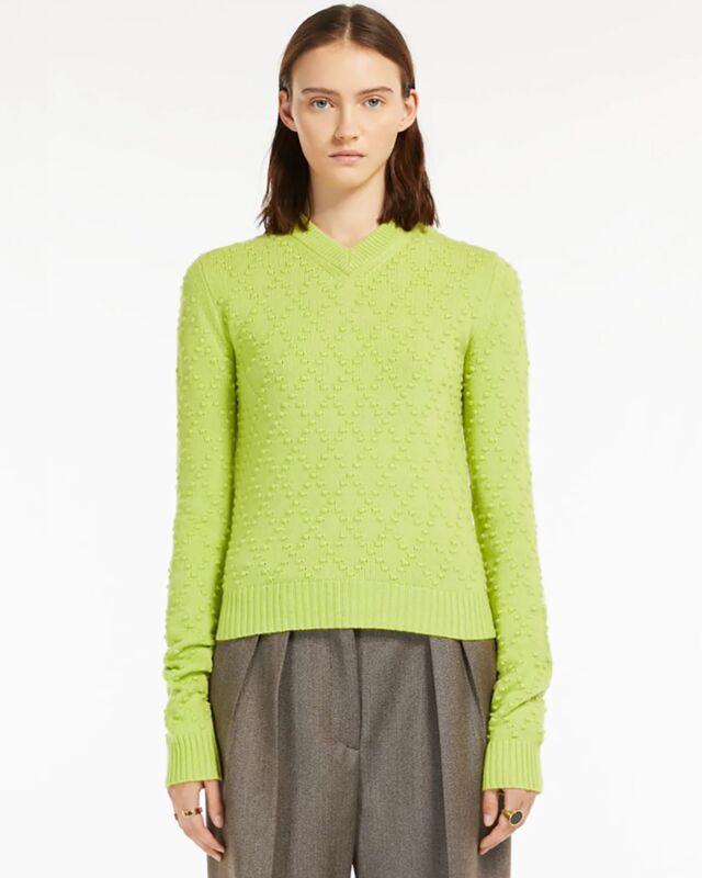 Цвет гуакамоле в осенней коллекции Sportmax - фактурный джемпер, водолазка, свитер.