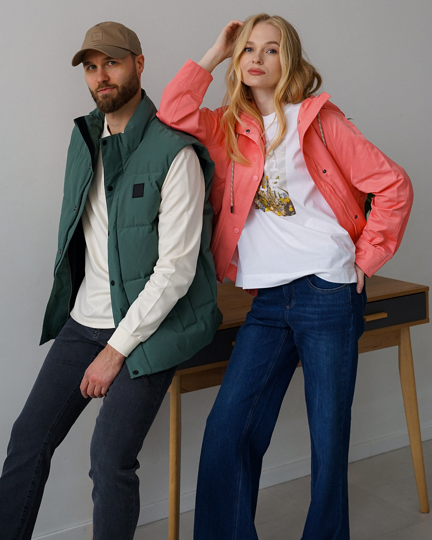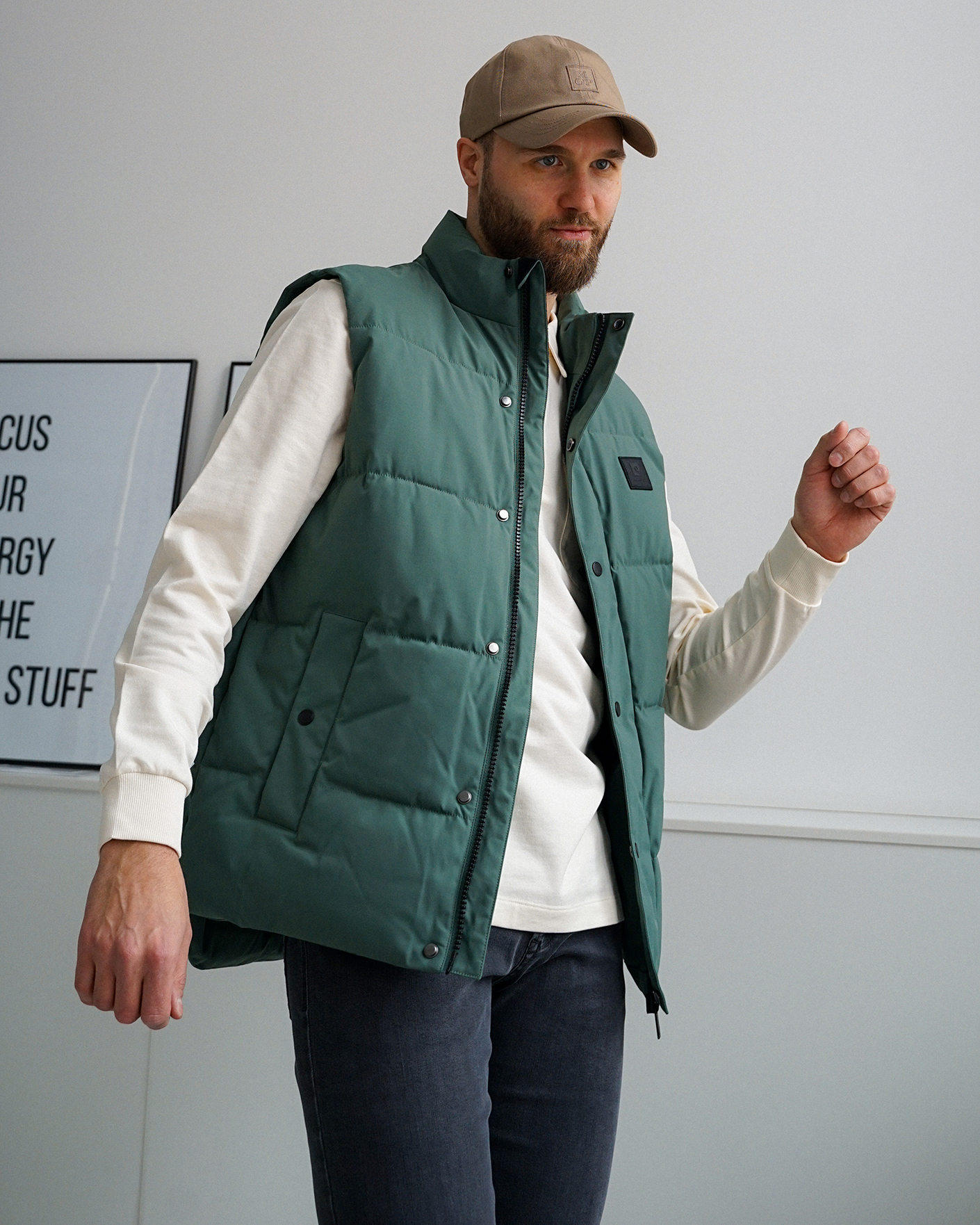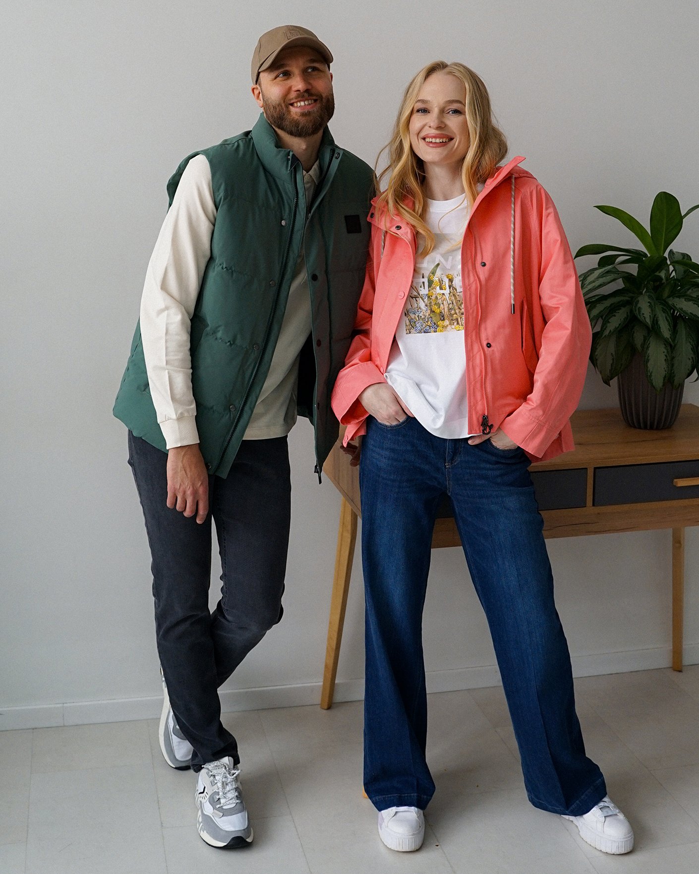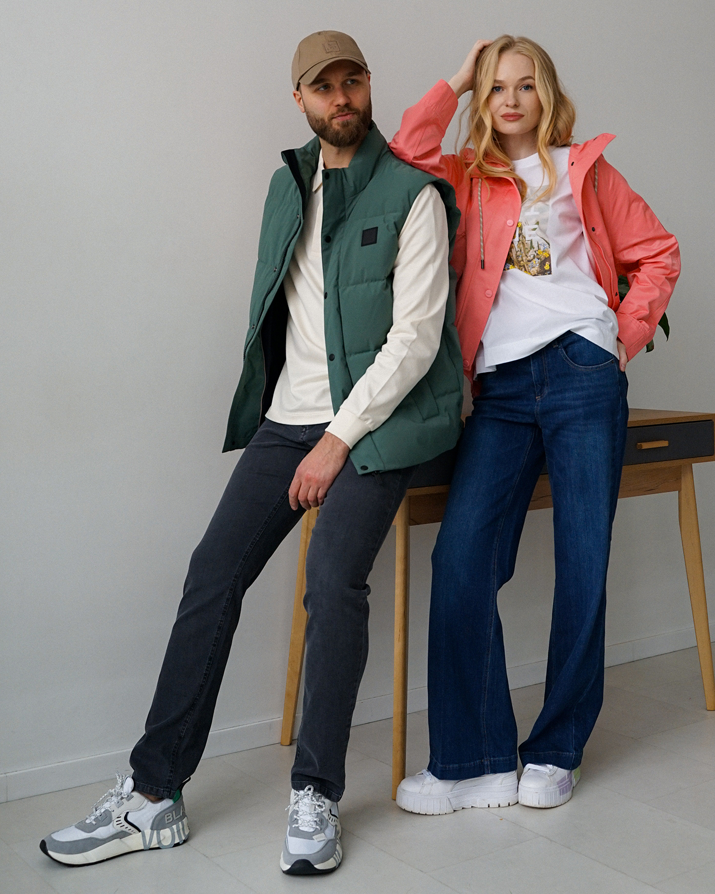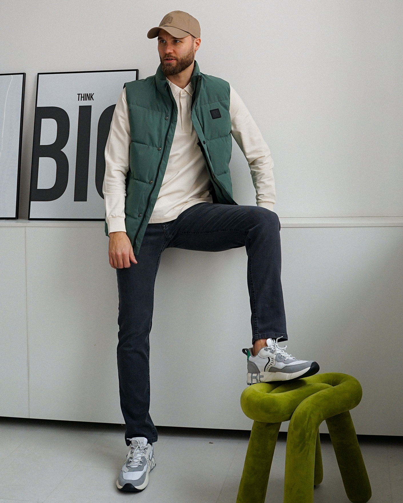 комфортный образ на каждый день: жилет, толстовка-поло, джинсы