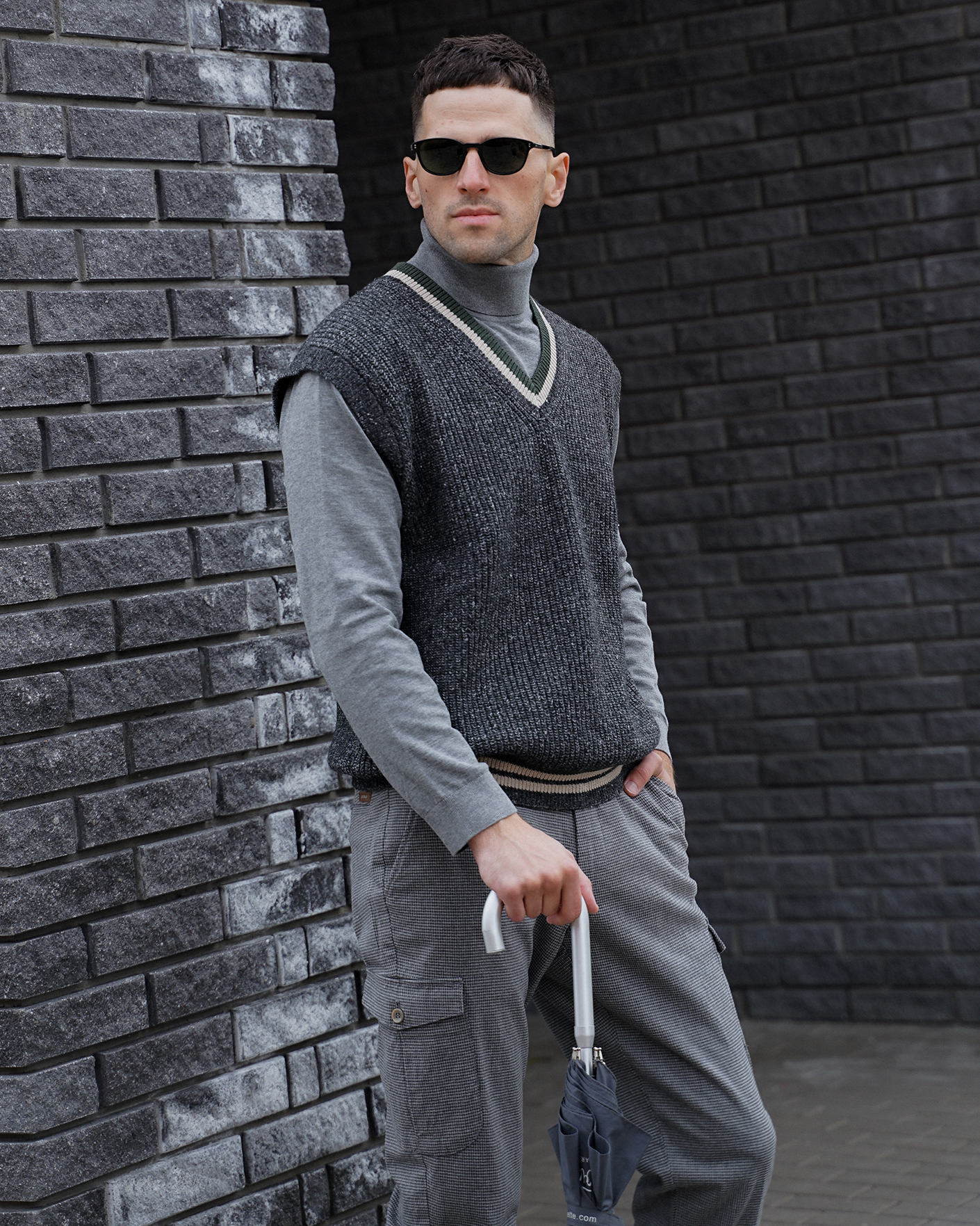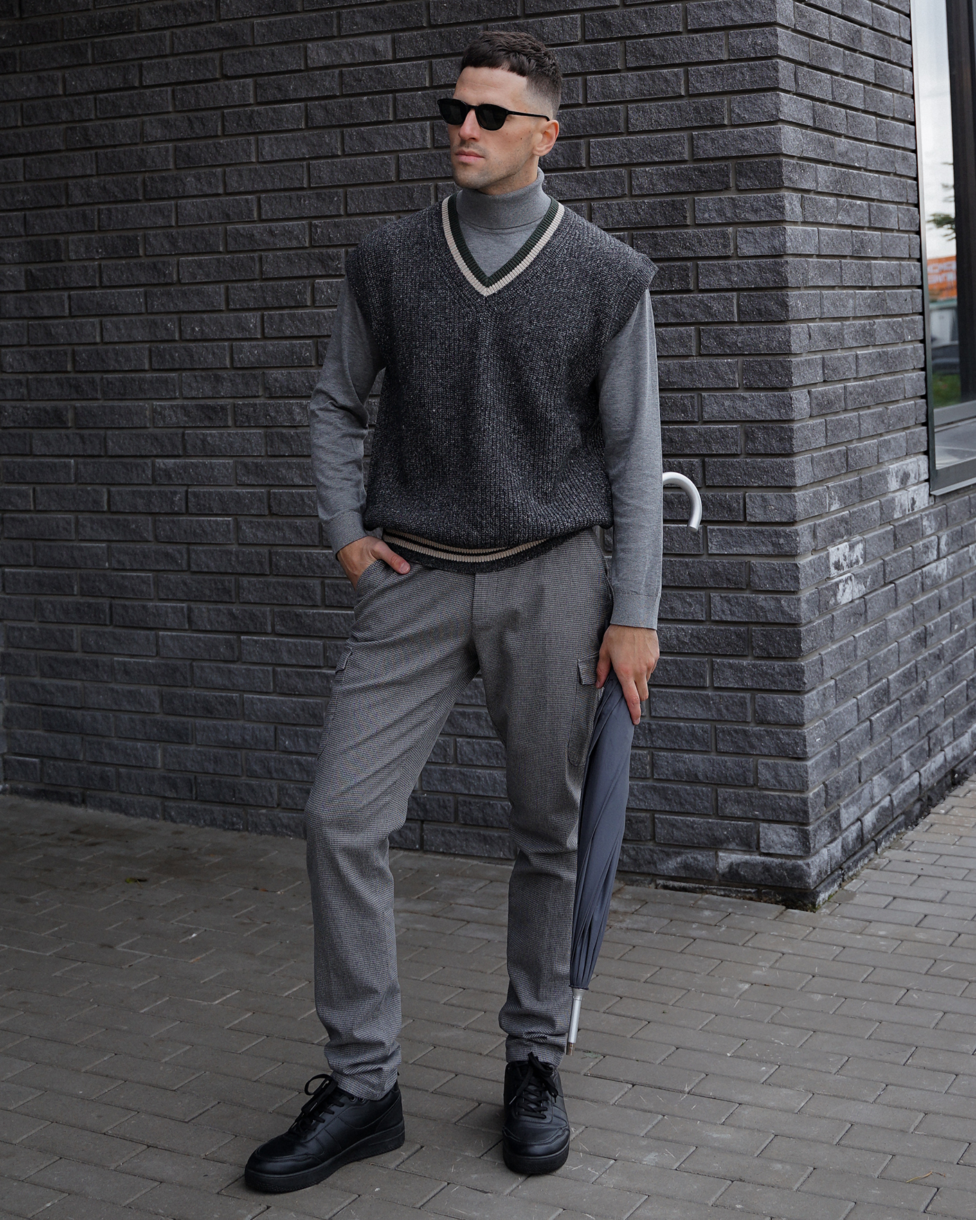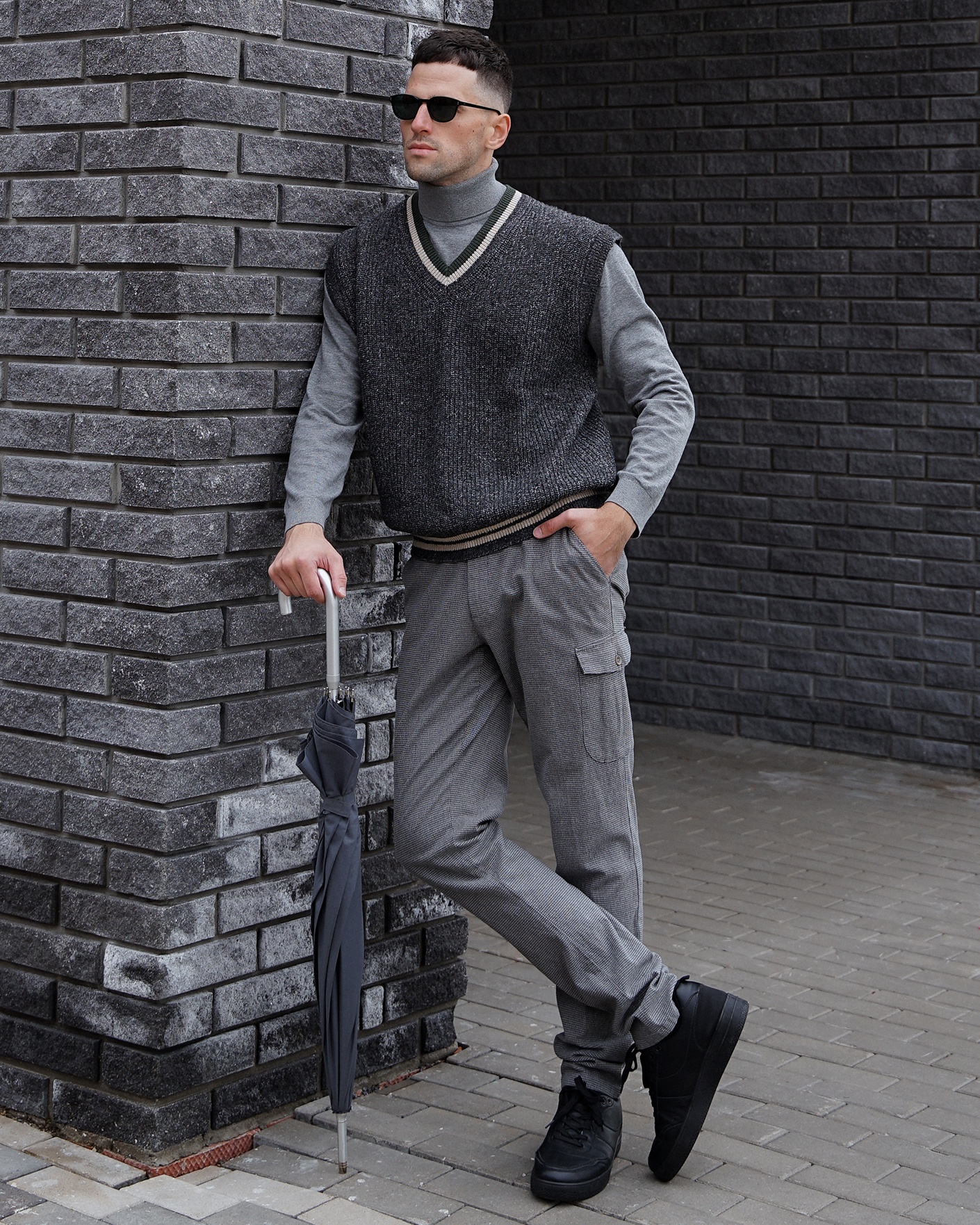 стильный образ на каждый день: куртка, жилет, свитер, карго