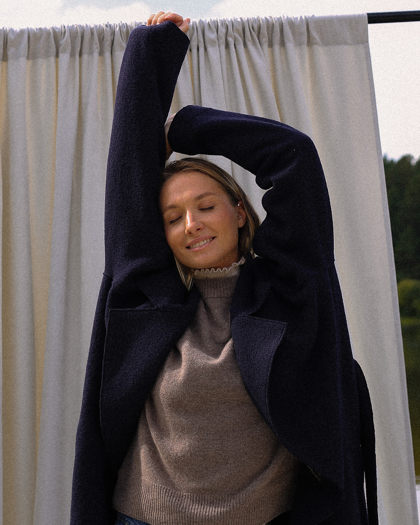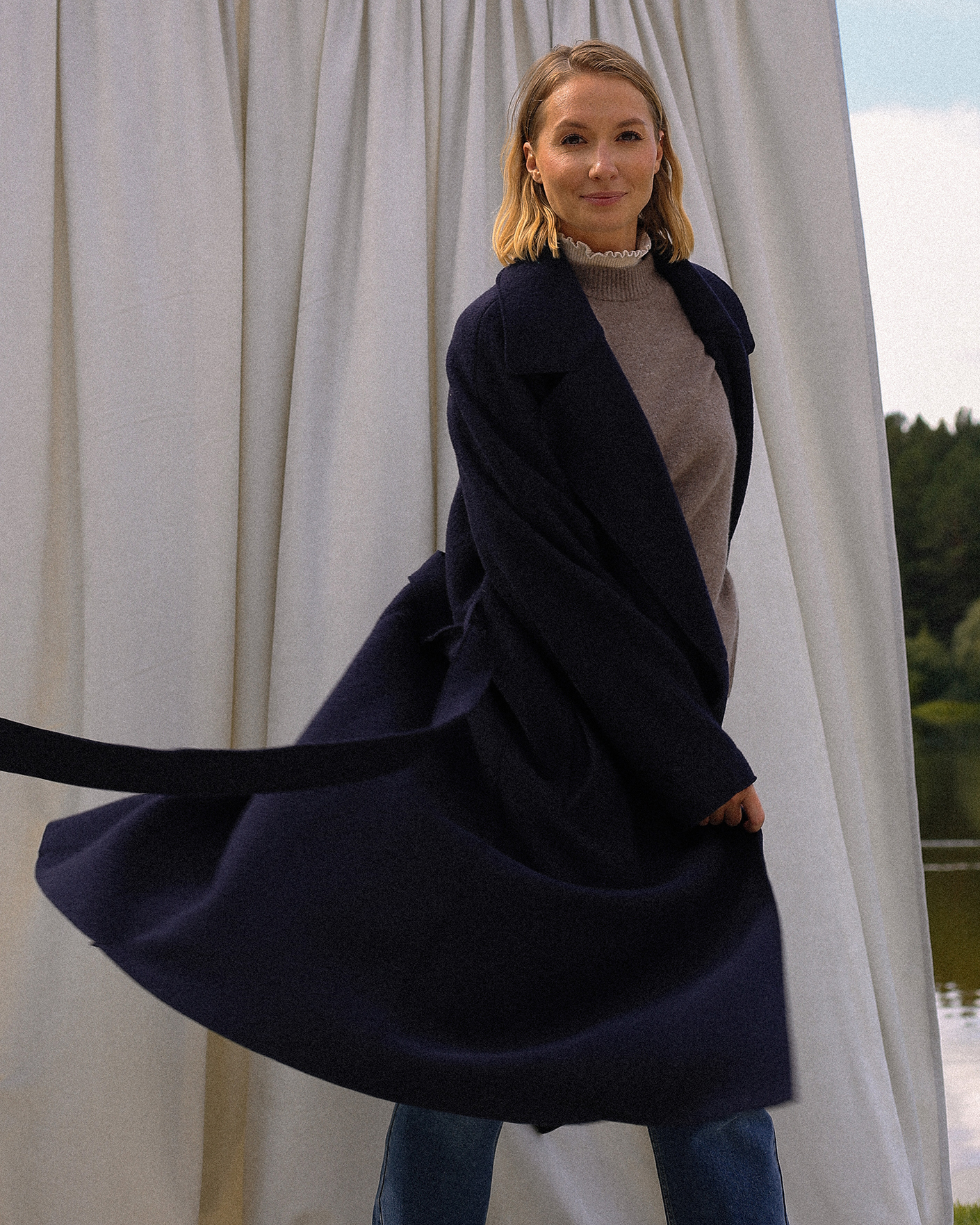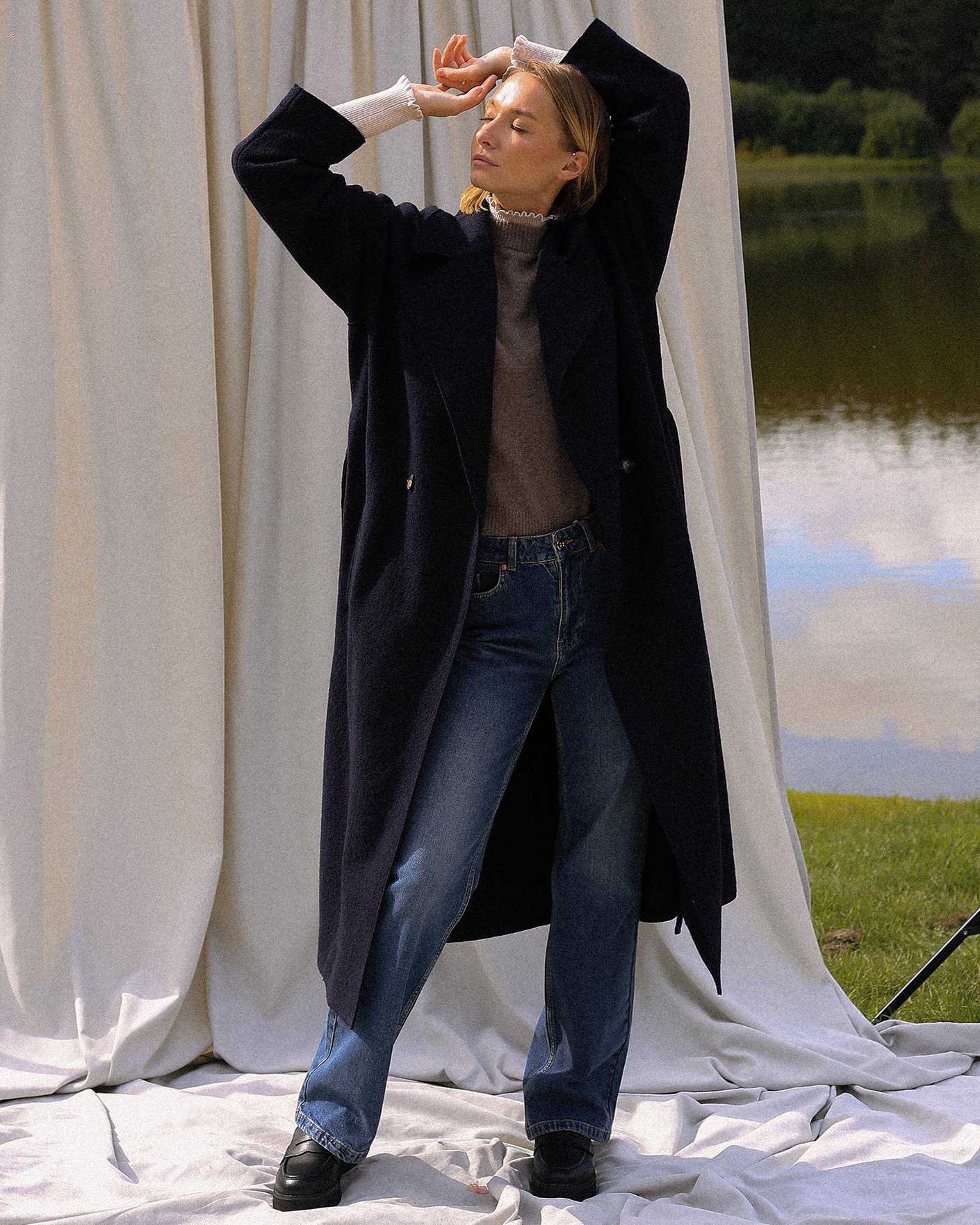 универсальный образ от oui: пальто-пыльник, джемпер, водолазка, джинсы-карго