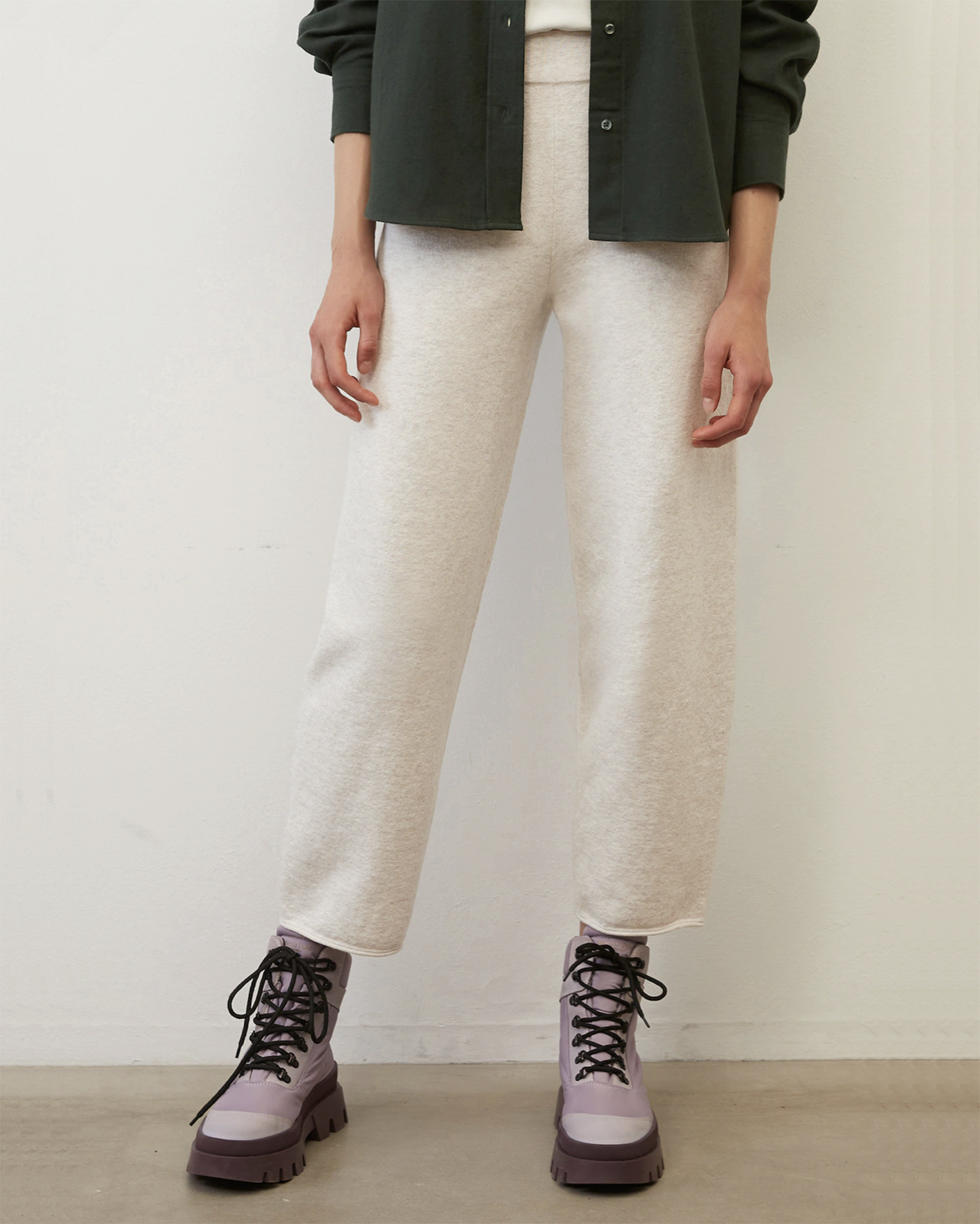 Мягкие брюки-джоггеры Marc O'Polo светло-бежевого цвета в строчный рисунок. Модель с завышенной талией на резинке, что обеспечивает комфортную посадку. Брюки отлично впишутся в ваш гардероб.