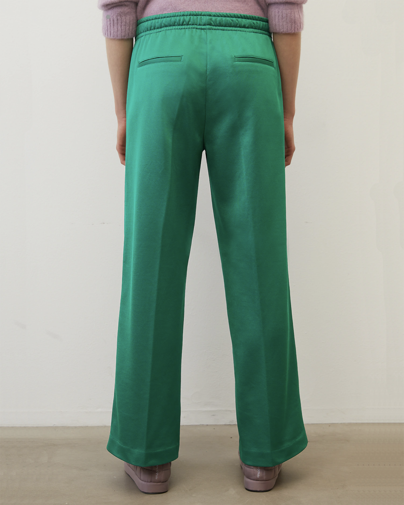 Яркие брюки-джоггеры-трубы Marc O'Polo зеленого цвета в строчный рисунок. Модель средней посадки на резинке в складку, имеется декоративный шов по центру штанин. Врезные карманы по бокам и сзади. Джоггеры-трубы отлично впишутся в ваш гардероб.