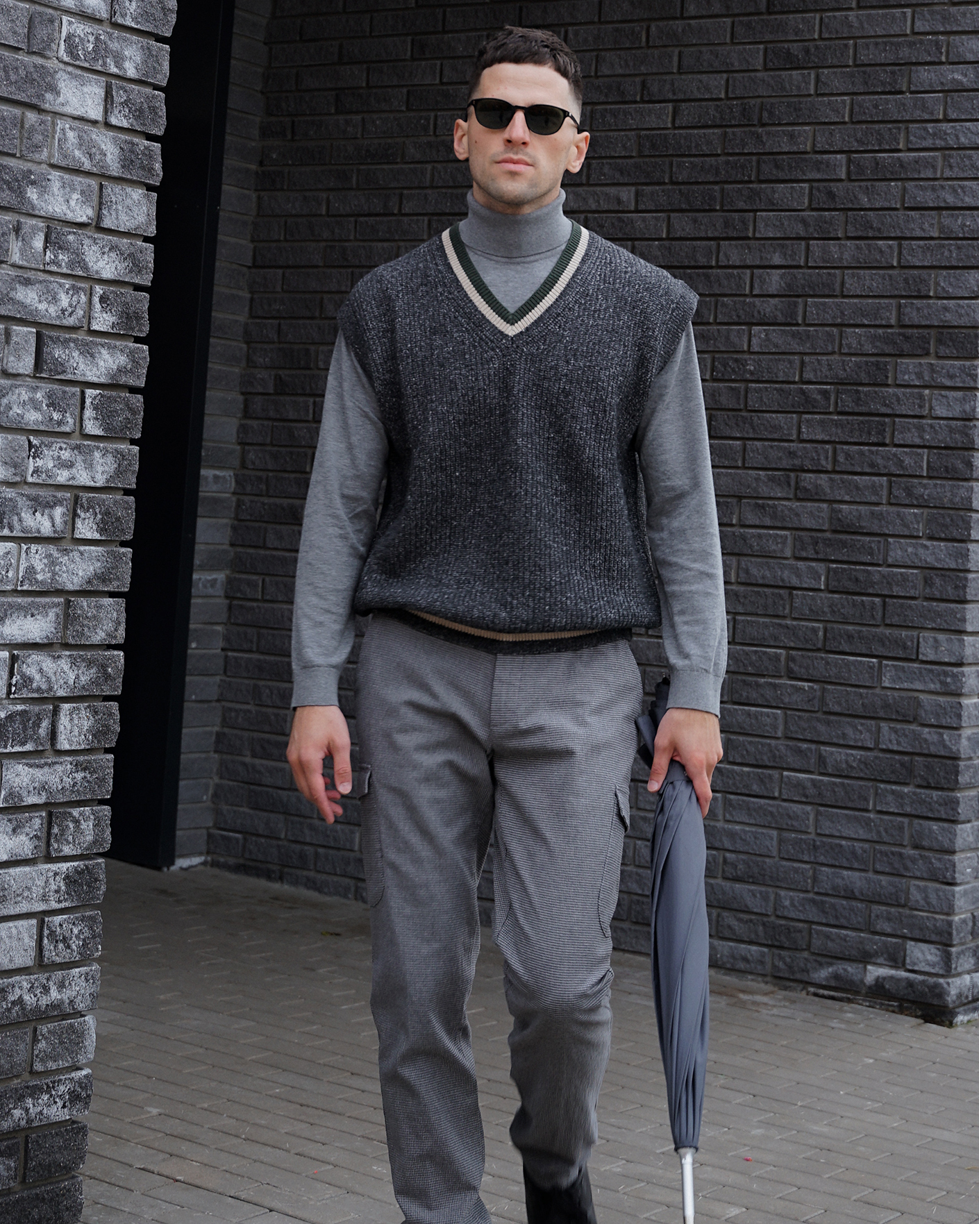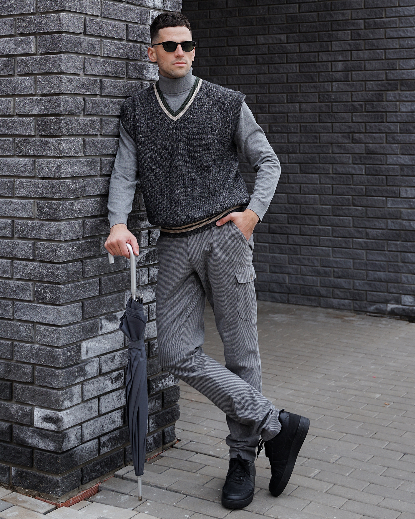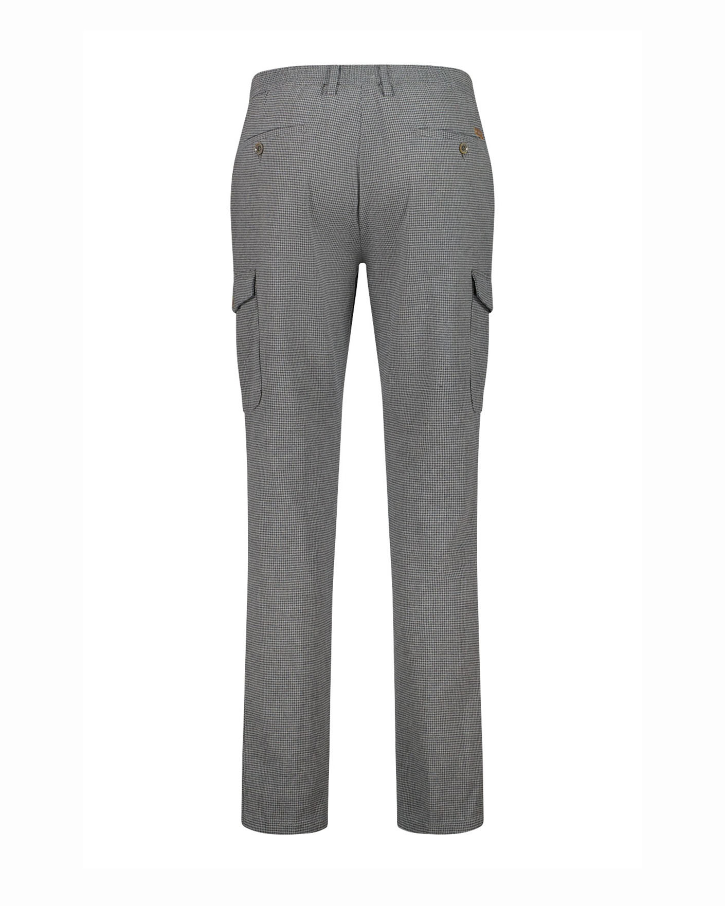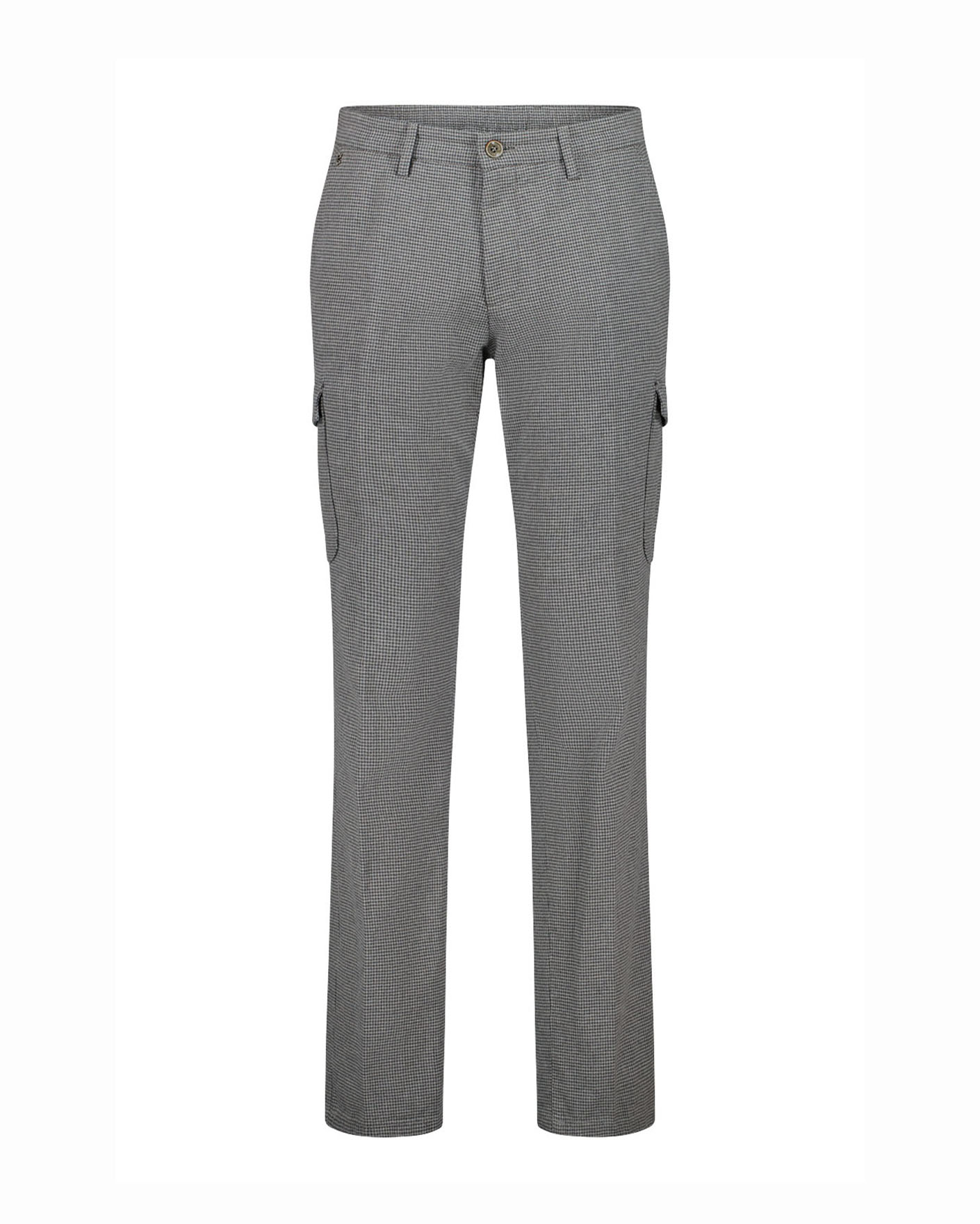 Брюки-карго Gardeur серого цвета в мелкий рисунок гусиные лапки. Хлопковая модель на стандартной застежке, имеются врезные карманы по бокам и сзади на пуговице, также накладные набедренные карманы с клапанами. Стильные карго отлично впишутся в повседневный гардероб.