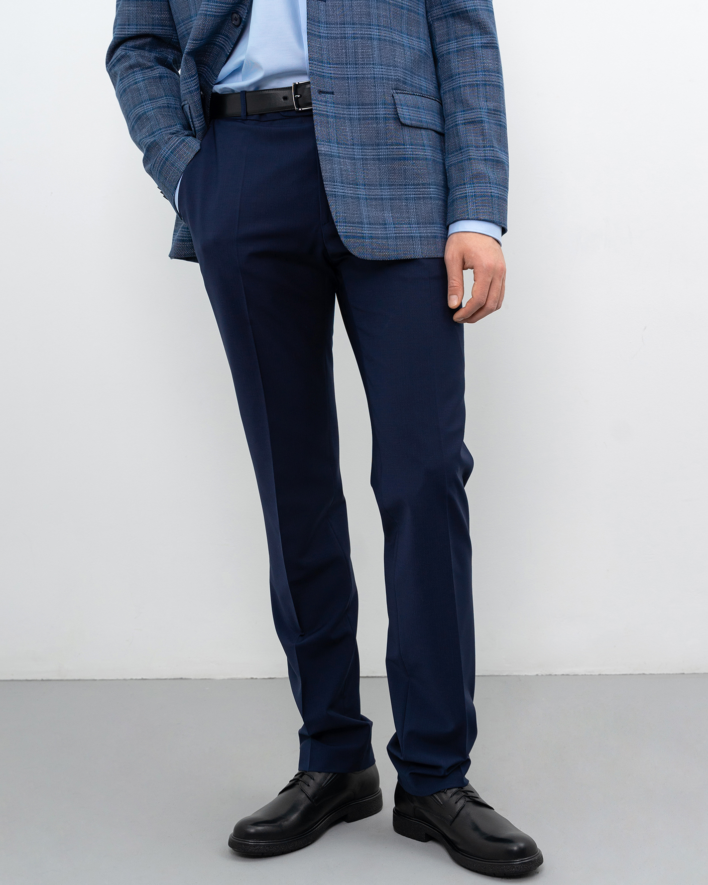 Классические брюки Truvor фиолетово-синего цвета. Модель на стандартной застежке, имеются врезные карманы. Брюки отлично сочетаются с рубашкой, джемпером, жилетом и пиджаком.