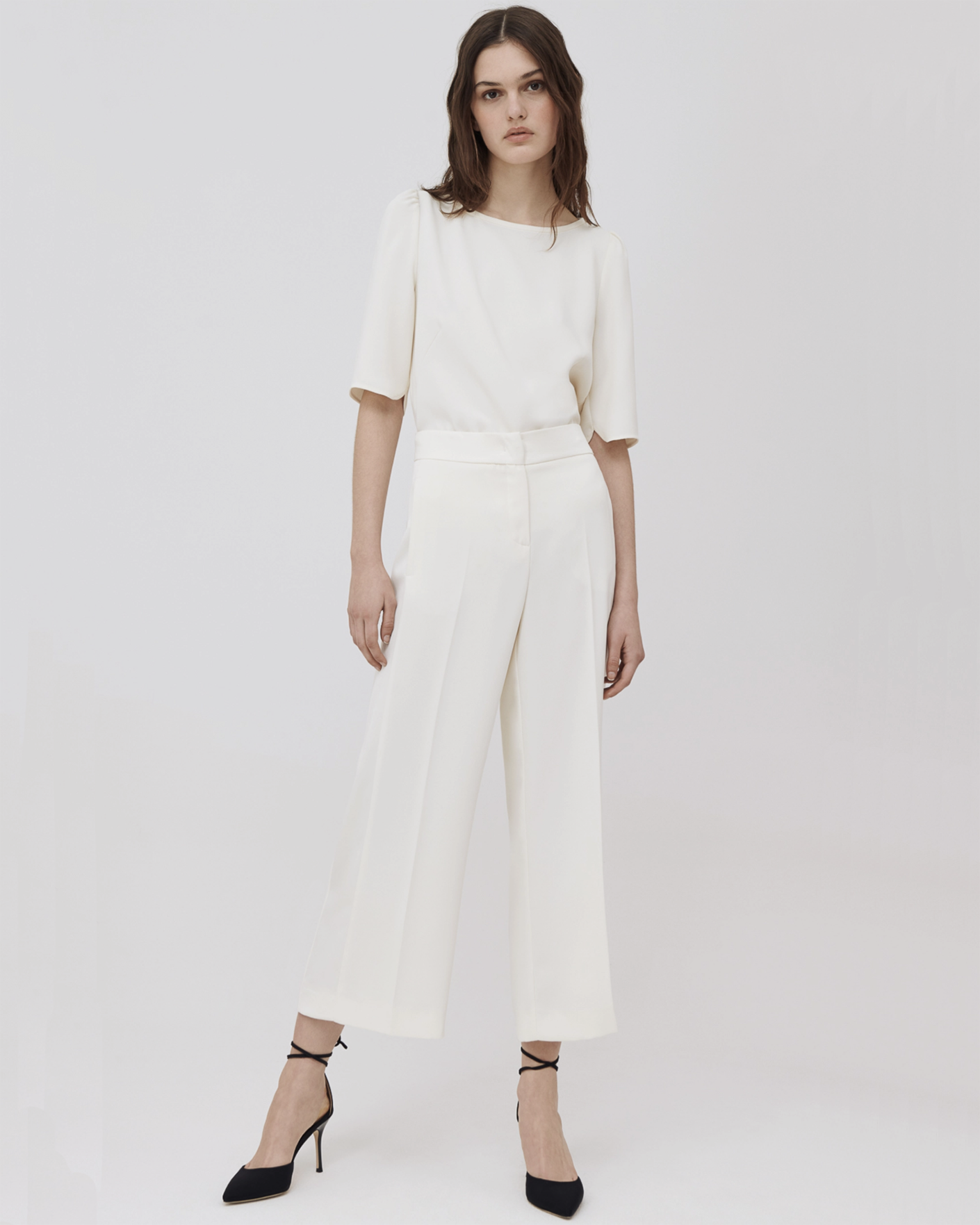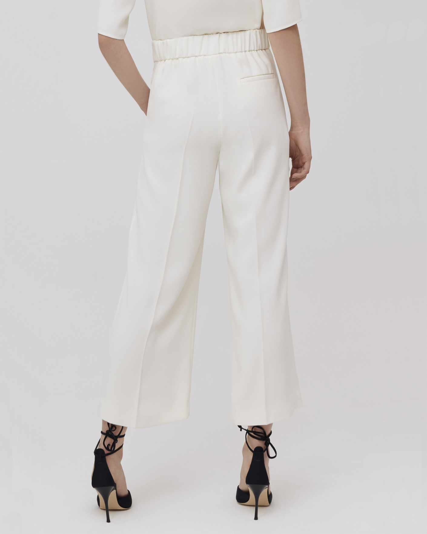 Брюки-кюлоты Marella белого цвета со стрелками. Модель с завышенной талией на резинке, скрытая застежка на молнию и крючок. Имеются врезные карманы по бокам и один сзади. Стильные брюки станут фаворитами вашего гардероба.