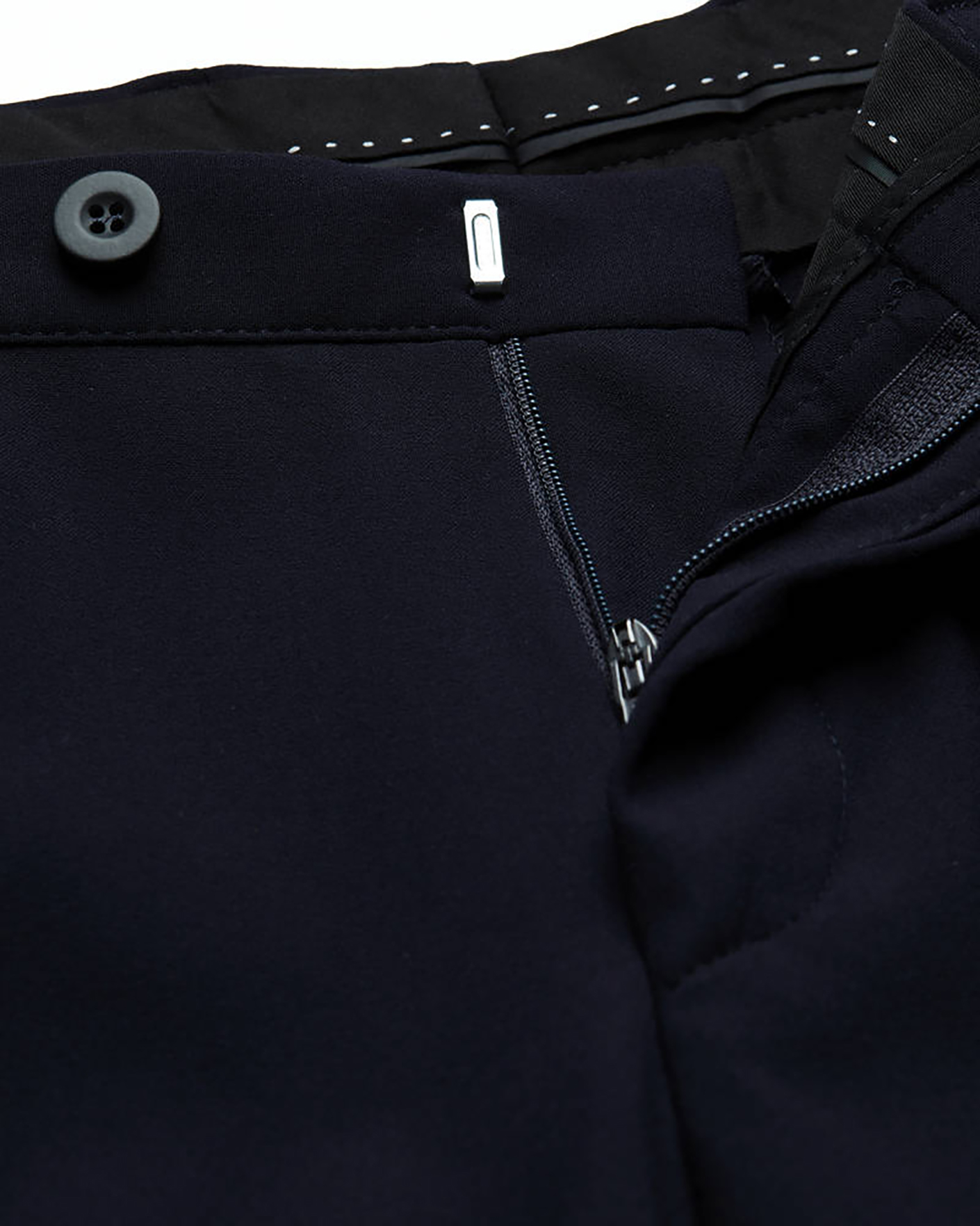 Классические брюки Digel темно-синего цвета. Модель на стандартной застежке, имеются врезные карманы по бокам и сзади на пуговице. Брюки можно сочетать с рубашкой, водолазкой, джемпером, жидетом, кардиганом и пиджаком.
