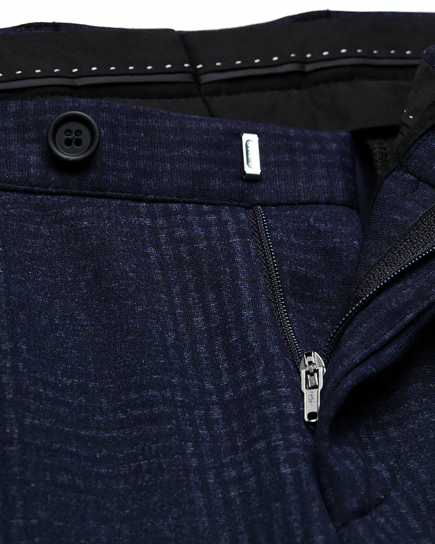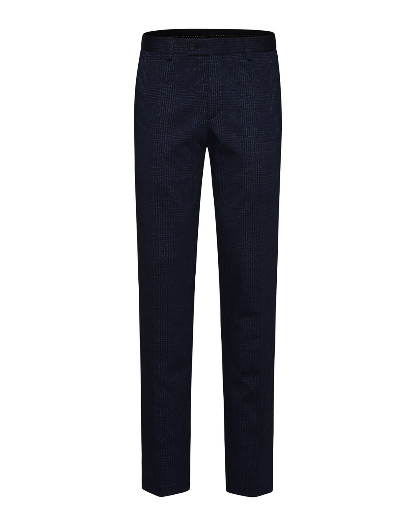 Классические брюки Digel сине-фиолетового цвета в крупную клетку. Модель на стандартной застежке, имеются врезные карманы по бокам и сзади на пуговице. Брюки можно сочетать с рубашкой, водолазкой, джемпером, жидетом, кардиганом и пиджаком.