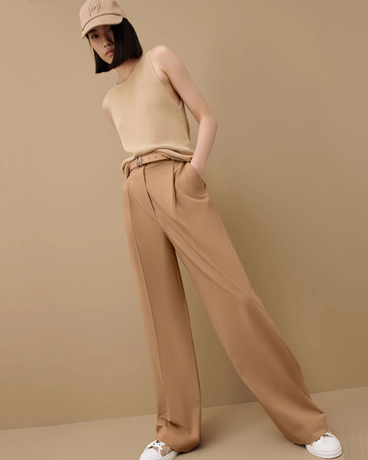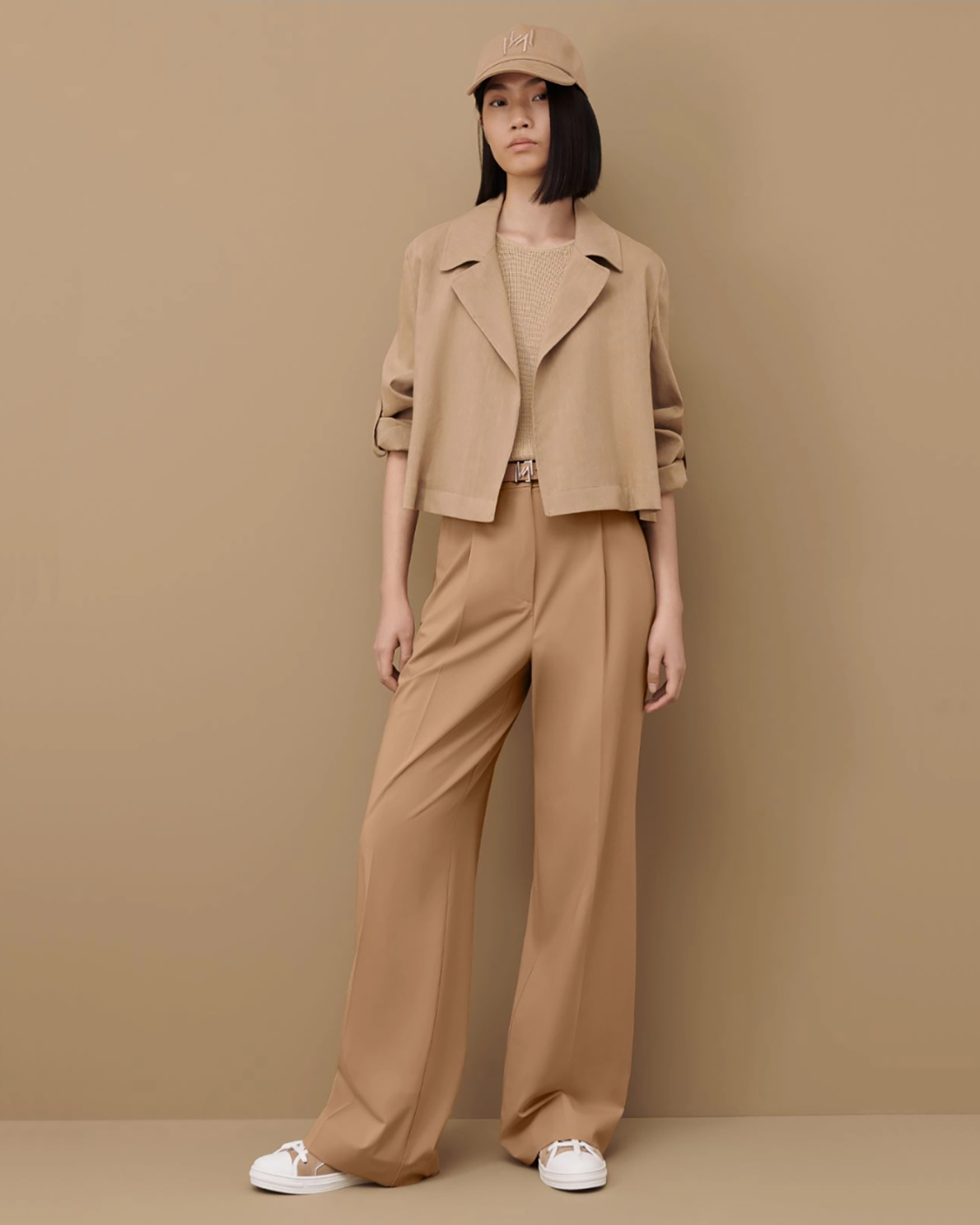 Стильные брюки-палаццо Marella бежевого цвета на защипах. Модель с завышенной талией на скрытой застежке. Имеются врезнные карманы по бокам и сзади. Брюки-палаццо можно сочетать с топом, футболкой, рубашкой, блузой, джемпером, кардиганом и жакетом.