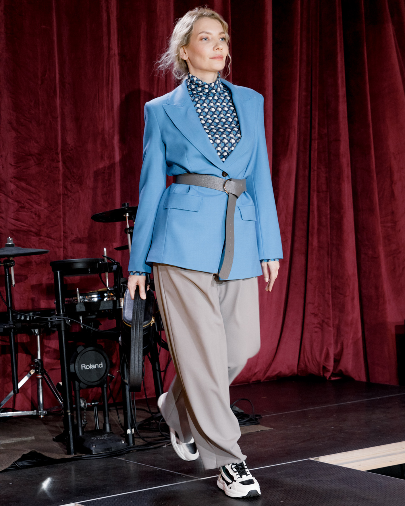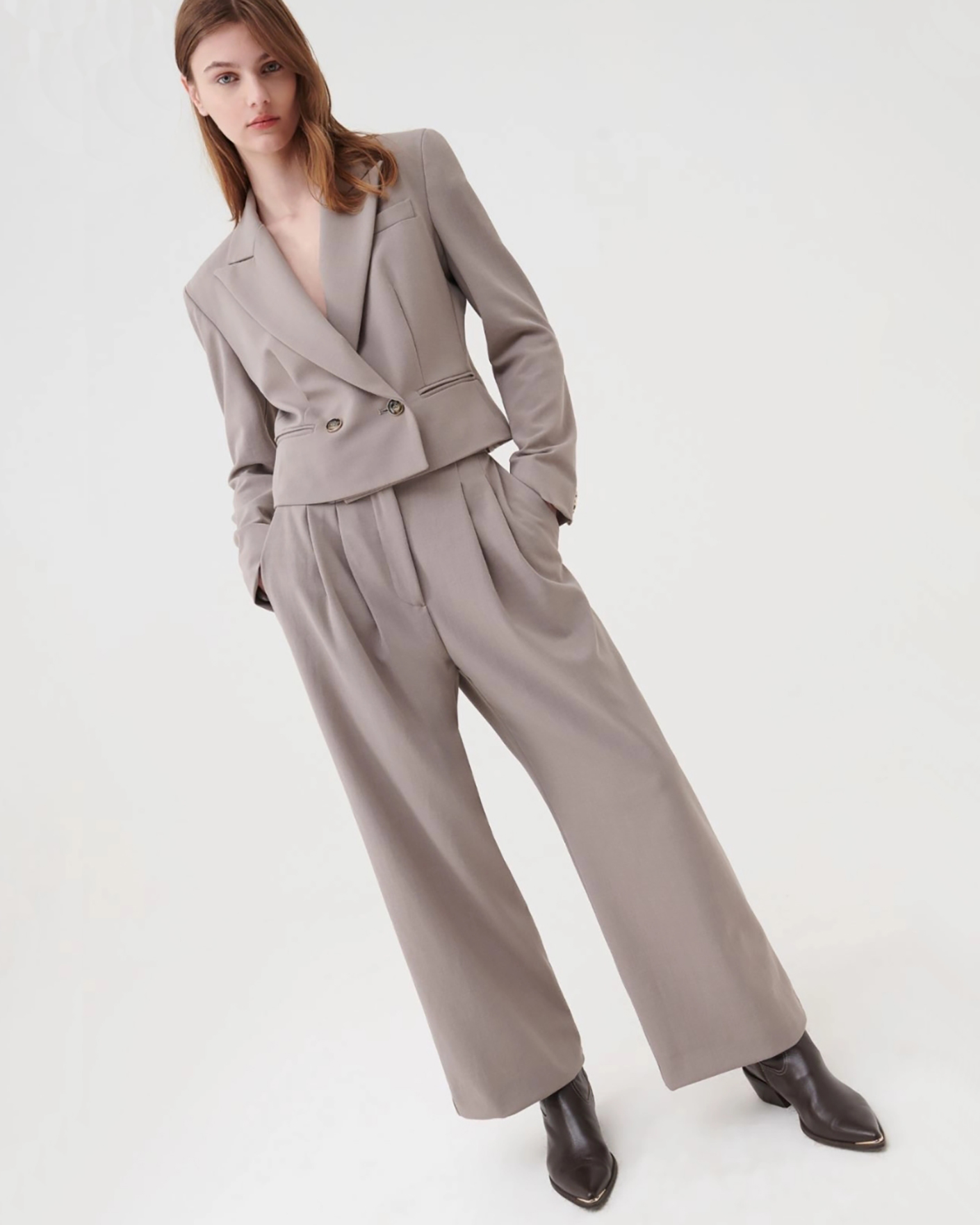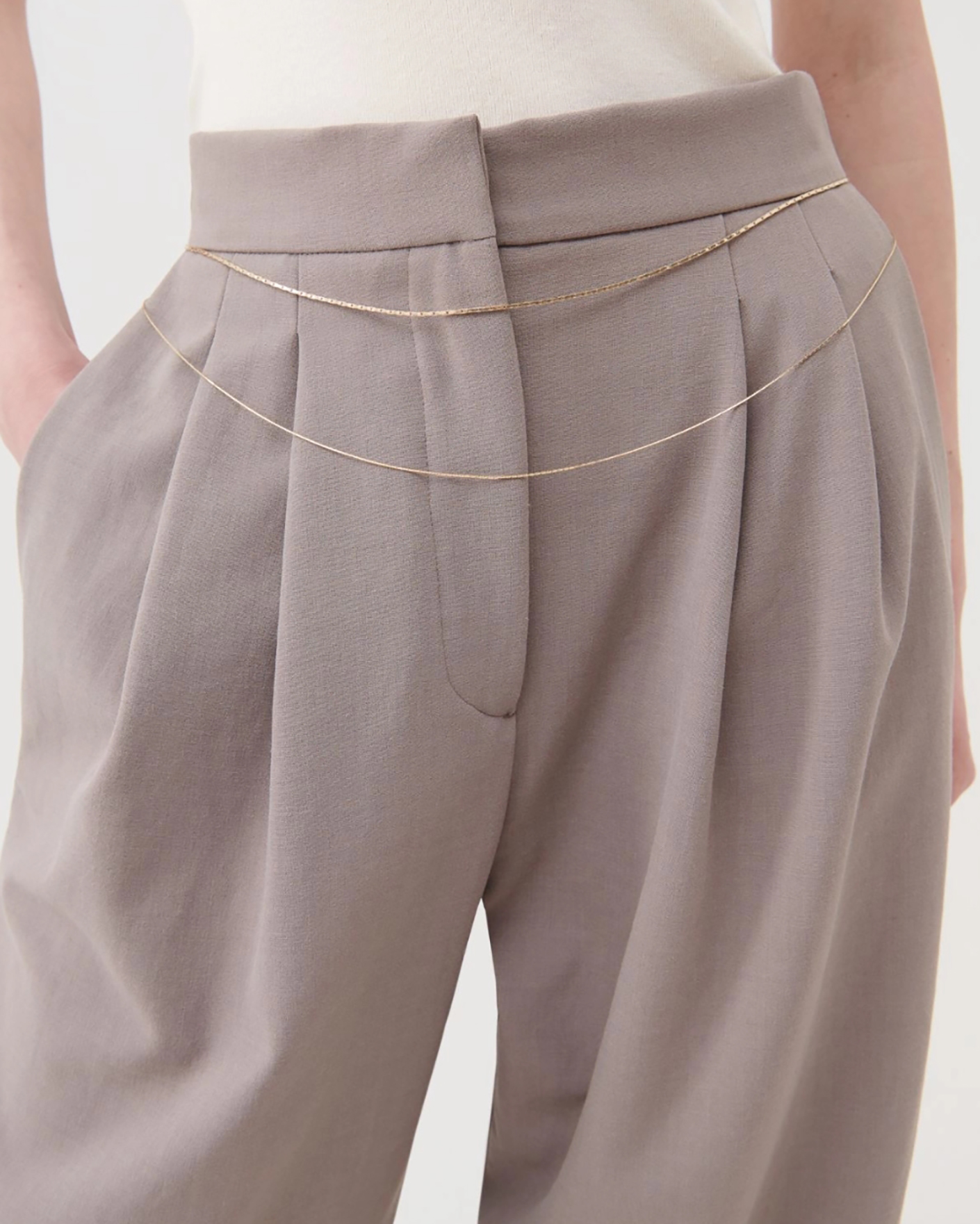 Брюки Marella бежево-серого цвета в строчный рисунок. Модель прямого кроя с завышенной талией на защипах, скрытая застежка, врезные карманы по бокам. Двойная тонкая цепочка-ремешок идеально дополняет образ. Брюки можно сочетать с любым гардеробом на каждый день.